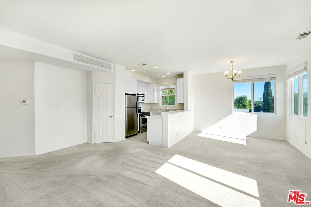 Experience elevated top-floor living in this fantastic newly remodeled 2-bedroom, 2-bathroom Penthouse. Corner-unit condo with unobstructed views all around. This sun-filled penthouse-style home boasts sweeping east and south-facing views, soaring ceilings, and an abundance of natural light throughout. Freshly repainted walls add a warm, inviting feel, while the smartly designed layout offers both comfort and functionality. The spacious living and dining area features oversized windows, a cozy fireplace, and seamless flow into a well-appointed kitchen with stainless steel appliances, stone countertops, and generous cabinet and storage space. The primary suite includes a large en suite bathroom with an oversized vanity, tiled tub and shower, and ample closet space. The second bedroom showcases treetop, city, and mountain views to the south, perfect for a home office or guest space. Additional highlights include an in-unit washer and dryer, two-car tandem parking in a gated garage, and secure building access. Tucked away on a quiet street near the vibrant NOHO Arts District and Toluca Lake West, you're just minutes from top shops, dining, and local culture. MLS# 25621149