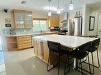 Courtesy of London Foster Realty Posted by Andrew Coleman with EXP Realty . Move-in ready 3/2/2 with salt-water pool; cabana master bath and screened-in porch. Travertine and marble-like flooring throughout living areas. Updated open layout kitchen, solid wood cabinetry, stainless steel appliances, huge island for entertaining, modern upgrades everywhere! Extra-wide driveway for 3+ cars. New roof 2025. New A/C 2024. This pristine home is in perfect condition for quick move-in. Includes clear storm shutters. Impact front door and front bedroom window. Centrally-located near Lantana square, shops and much more.