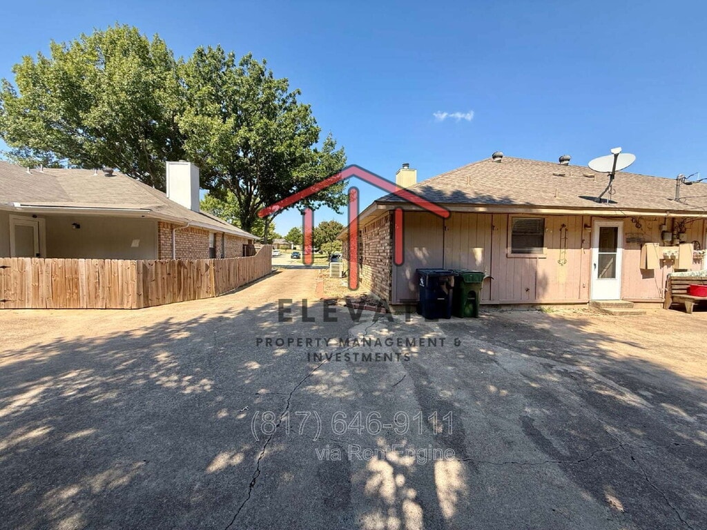 Explore the charm and comfort of 5431 Stagetrail Dr., nestled in the vibrant community of Arlington, TX. This inviting duplex offers two spacious bedrooms and two full baths, providing a perfect blend of convenience and style. With 1,184 square feet of thoughtfully designed living space, this home is ideal for those seeking a harmonious balance between modern functionality and cozy ambiance. Each room is bathed in natural light, creating a warm and welcoming environment for relaxation and entertainment. The open floor plan seamlessly connects the living and dining areas, offering an ideal setting for gatherings and memorable moments. Located in a thriving neighborhood, this property is a gateway to a plethora of local amenities and attractions, ensuring endless opportunities for leisure and exploration. The vibrant surroundings offer a dynamic lifestyle, with easy access to shopping, dining, and entertainment options. Whether you're unwinding after a long day or hosting a weekend get-together, 5431 Stagetrail Dr. is designed to cater to your every need. Discover the potential of this exceptional duplex, where comfort and convenience meet to create a truly delightful living experience. By submitting your information on this page you consent to being contacted by the Property Manager and RentEngine via SMS, phone, or email.