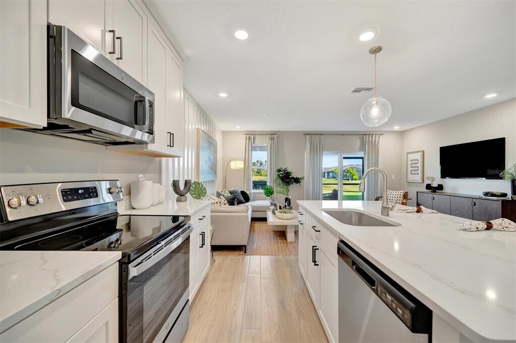 Welcome to this stunning former builder's model home located in the desirable Trevesta community. Designed with upgraded finishes and thoughtful details throughout,this residence offers the perfect blend of style,comfort,and modern living. Featuring an open-concept layout,the home boasts a bright and spacious great room,a gourmet kitchen with premium cabinetry,stainless steel appliances,quartz countertops,and an oversized island ideal for entertaining. The private owner's suite includes a spa-inspired bath with dual vanities and a walk-in closet,while additional bedrooms provide flexibility for guests,a home office,or growing families. As a former model,the home showcases designer lighting,custom trim work,accent walls,and enhanced landscape features that set it apart from the rest. Enjoy peaceful Florida living on the screened lanai overlooking a beautifully maintained yard. Trevesta offers resort-style amenities including a clubhouse,fitness center,zero-entry pool,playground,and walking trails?all with easy access to I-75,St. Petersburg,Bradenton,and award-winning Gulf beaches. Move-in ready and rich with upgrades,this former model home is a rare opportunity?schedule your showing today! MLS# A4688559