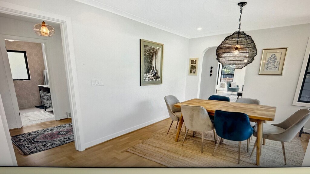 Applications accepted no sooner than October 3rd at 8am. Step into this beautifully renovated 3-bedroom, 3 bathroom gem, perfectly blending modern upgrades with classic charm. As you enter, you'll be greeted by an expansive, light-filled living room complete with large, brand-new windows featuring sleek black trim, allowing natural light to pour in. The gas fireplace serves as a stunning focal point, while the warm old-growth oak hardwood floors create a cozy and inviting atmosphere. The walls are freshly painted in a sophisticated palette, complemented by tasteful window coverings. The open kitchen is an entertainer’s dream. Equipped with stainless steel appliances, gorgeous silestone countertops, and custom cabinetry, the spacious kitchen boasts a large island, ideal for casual dining or meal prep. Large windows offer a bright, airy feel, seamlessly flowing into the adjoining dining area. Upstairs, you’ll find two beautifully updated bathroom featuring luxurious rain showerhead. The downstairs bath includes a deep soaking tub for those moments of relaxation. The spacious downstairs living area offers flexibility—it comes furnished with a stylish Crate & Barrel couch, bookshelves, and a wall-mounted TV, making it perfect for a home theater or cozy retreat. The converted garage now serves as a fantastic ADU, complete with its own kitchen and full bath—ideal for guests, in-laws, a studio, or a personal workspace. This additional unit offers endless possibilities for anyone looking for flexible living arrangements. The fully fenced backyard offers a peaceful, private escape with beautiful landscaping, maintained by the owner, and plenty of space for outdoor gatherings. The air conditioning ensures comfort during hot summer days, while parking is easy, thanks to a side alleyway. Situated just a short walk from Woodstock Park, this home is perfectly located near Safeway, Bi-Mart, charming cafes, and restaurants. Plus, public transportation is steps away, making commuting a breeze. Details: Pets welcome upon approval Tenant pays all utilities Close to schools, shopping, and dining This home offers a rare combination of space, style, and location—don’t miss the opportunity to call it yours! The City of Portland requires a notice to applicants of the Portland Housing Bureau’s Statement of Applicant Rights. Additionally, Portland requires a notice to applicants relating to a Tenant’s right to request a Modification or Accommodation.