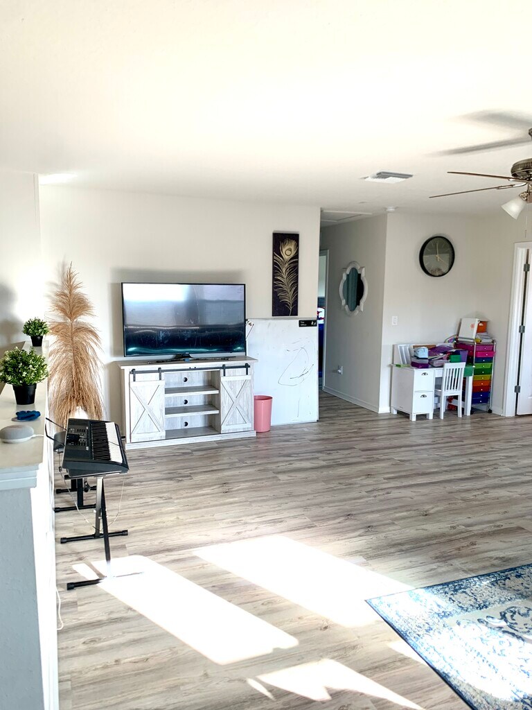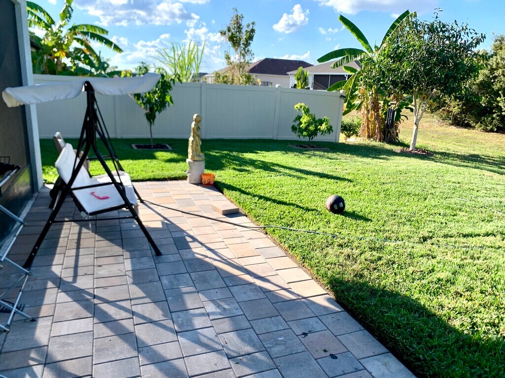 Home Features: 5 spacious bedrooms and 3 bathrooms with smart home system Doorbell and security camera ($60 additional) Carpet-free throughout modern tile and luxury vinyl flooring Lawn care provided by Owner - $100 only Free - Washer and dryer included Free - Water softener system for clean, soft water included no charge Beautiful pond and tree view from the backyard, full privacy no houses Covered patio (26' x 10') with durable epoxy flooring perfect for relaxing or entertaining Two-car garage with epoxy flooring Extended 26' x 8' paver area in the backyard for extra outdoor living space Outdoor Highlights: Well-maintained lawn with St Augustine grass. Backyard with 8 fully-grown, fruit-bearing trees (Mango, guava, Papaya, lychees etc.) Peaceful pond view with plenty of privacy with the trees in backside of property. Community Amenities: Located in Riverstone phase 1, one of South Lakeland's most desirable family and kids friendly communities Access to the two swimming pools, playground, walking trails, and clubhouse Easy access to schools, Publix shopping, and major highways like I-4