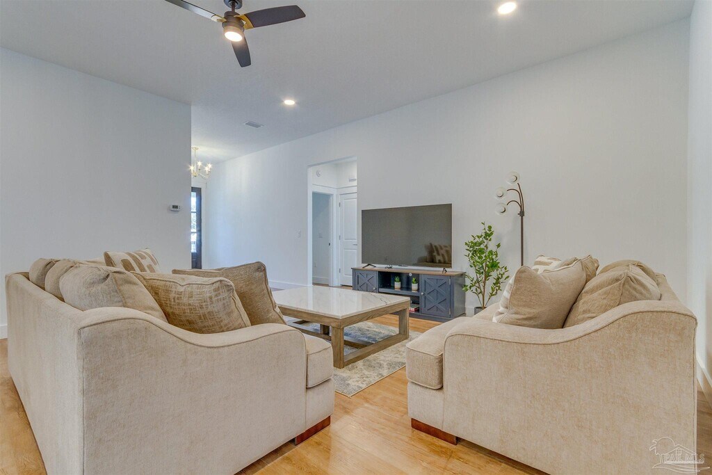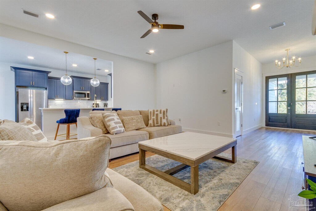 Gulf Breeze - 3 Bedroom,2 Bathroom This newer construction home sit directly next door to a neighborhood park and features stainless appliances,high ceilings,and more. Enter into the foyer/living room which is open to the bar top kitchen seating. Formal dinning room sits on the back end of the home with access to the covered patio. Master suite is located on the back side of the home with private access to the patio,walk in closet,walk in shower and double sink vanity. Guest bedrooms and bathroom are located off the living room. Laundry room is located off the kitchen with the garage access and pantry closet. Backyard is not enclosed. Property can be furnished or unfurnished. Pet(s) allowed on a pre-approved basis with all pet fees paid. Owner/Manager reserves the right to deny any pet(s) at any time. Tenant Benefit Package fee of $29/month is required for all tenants. See "Tenant Benefit Package" under Tenant drop down for more information.