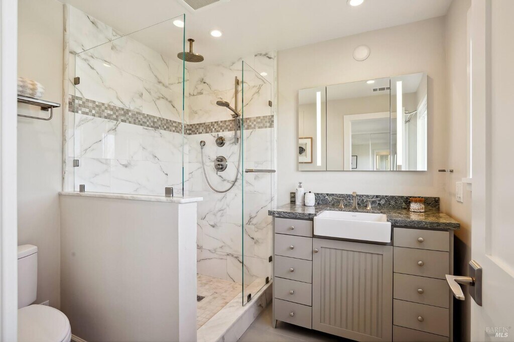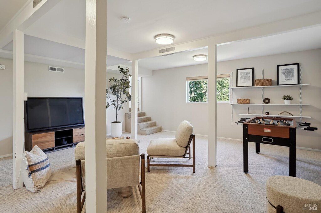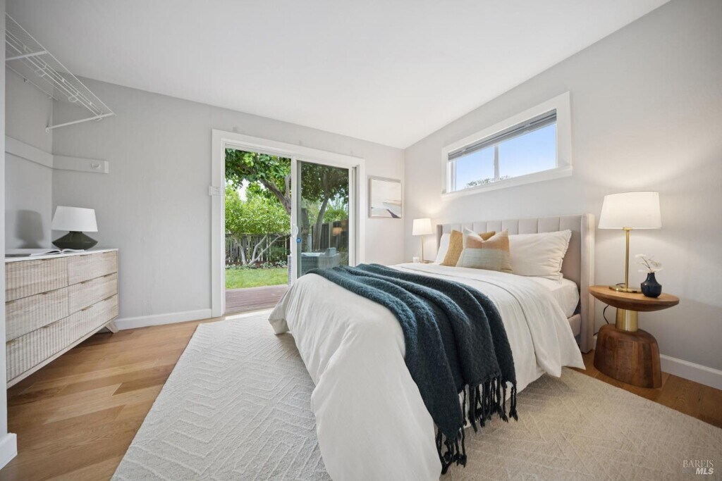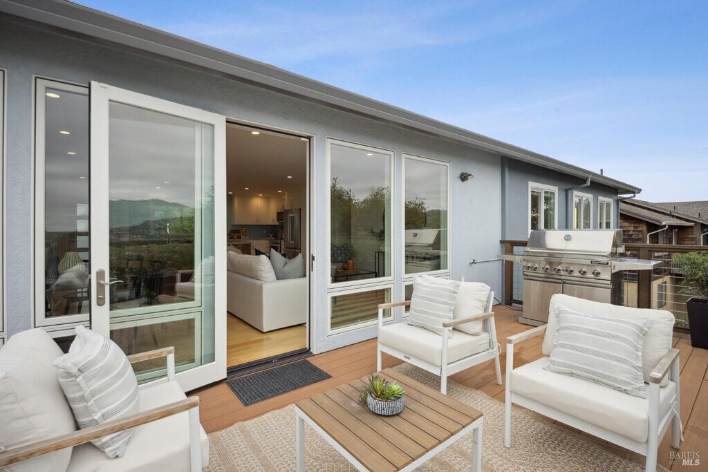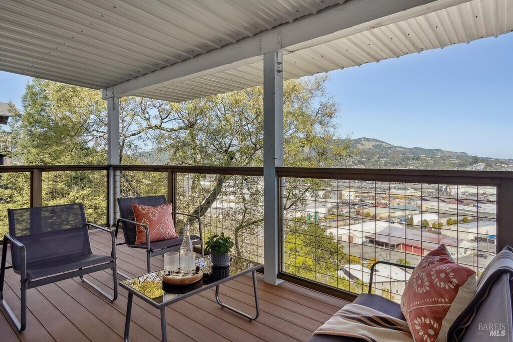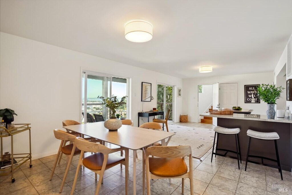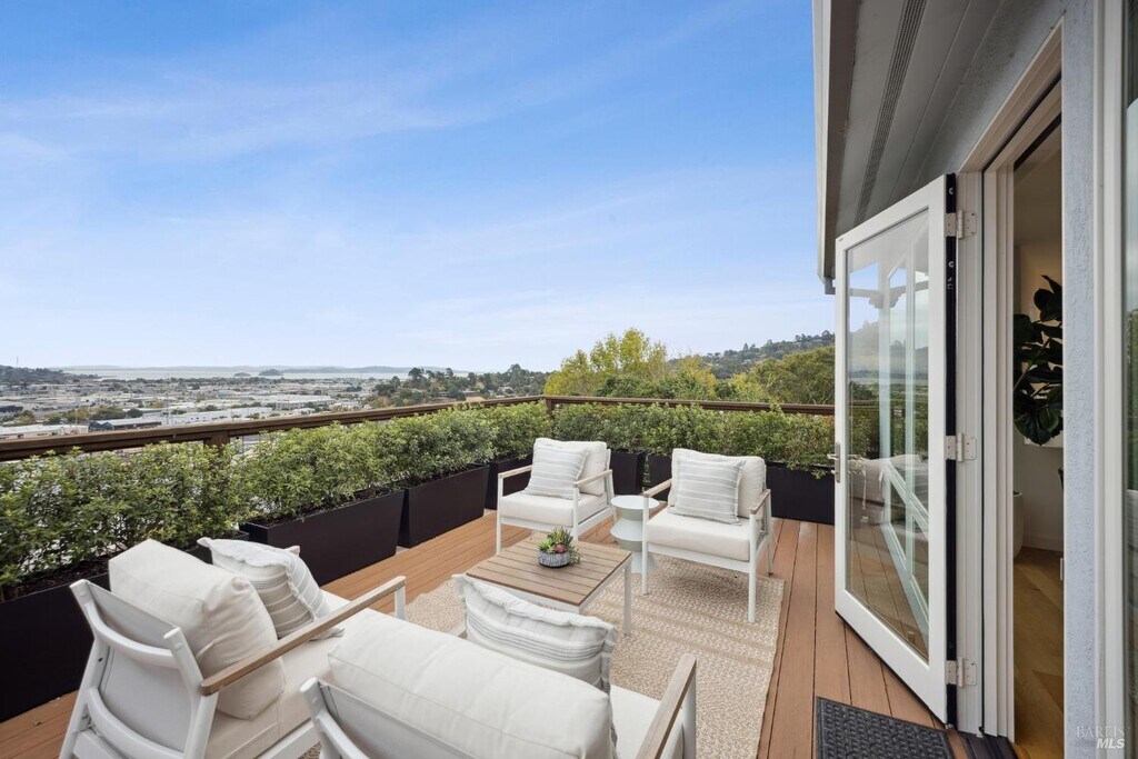 Quiet cul-de-sac location, this San Rafael home offers stunning panoramic views and a flexible layout. With one level living, no steps from the 2 car garage with EV installed. The open-concept living and dining area is illuminated with natural light, and large sliding doors framing water views. Perfect for entertaining with a chef's kitchen that boasts custom cabinetry, quartzite countertops, and high-end appliances. Spacious rec room that can serve as a home office, gym, or studio. Downstairs, a fully permitted one-bedroom ADU with a separate entrance provides privacy and versatility ideal for guests, or multigenerational living. The ADU features its own deck with expansive views, making it feel like a home of its own. This property is packed with smart upgrades, including air conditioning, a whole-house water filtration system a 2020 roof with solar panels, and EV charger in the garage. The backyard offers raised garden beds, about 1300 feet of storage, and a charming chicken run. Located minutes from 4th Street, Downtown San Rafael, Gerstle Park, schools and shopping. MLS#325090651
