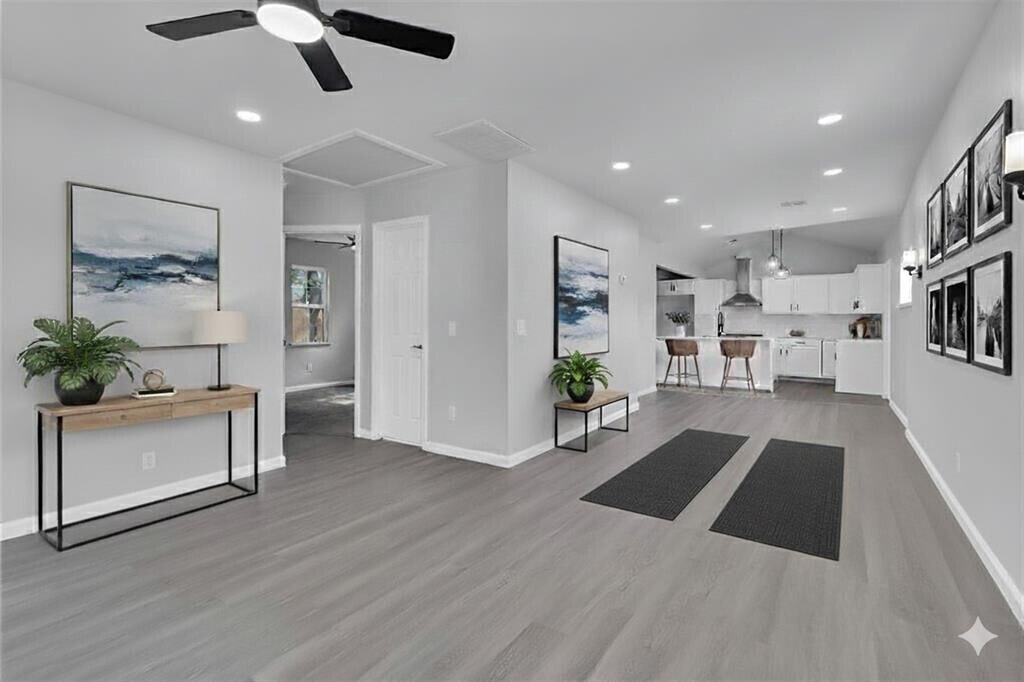 Beautifully remodeled 3-bedroom,2-bath home with 1,716 sq ft featuring an open floor plan,laminate flooring,recessed LED lighting,and modern finishes throughout. The gourmet kitchen offers quartz waterfall countertops,custom cabinetry,farmhouse sink,pendant lighting,and new stainless steel appliances. Spa-like bathrooms include tiled walk-in showers and floating vanities. Enjoy a fenced backyard with a custom stone fire pit,plus major updates including a new 2024 roof,updated plumbing and electrical,new HVAC,and attic insulation. Conveniently located near schools,shopping,and dining in Shawnee. Owner is open to lease with option to purchase or a direct purchase. Some photos may include virtual staging.