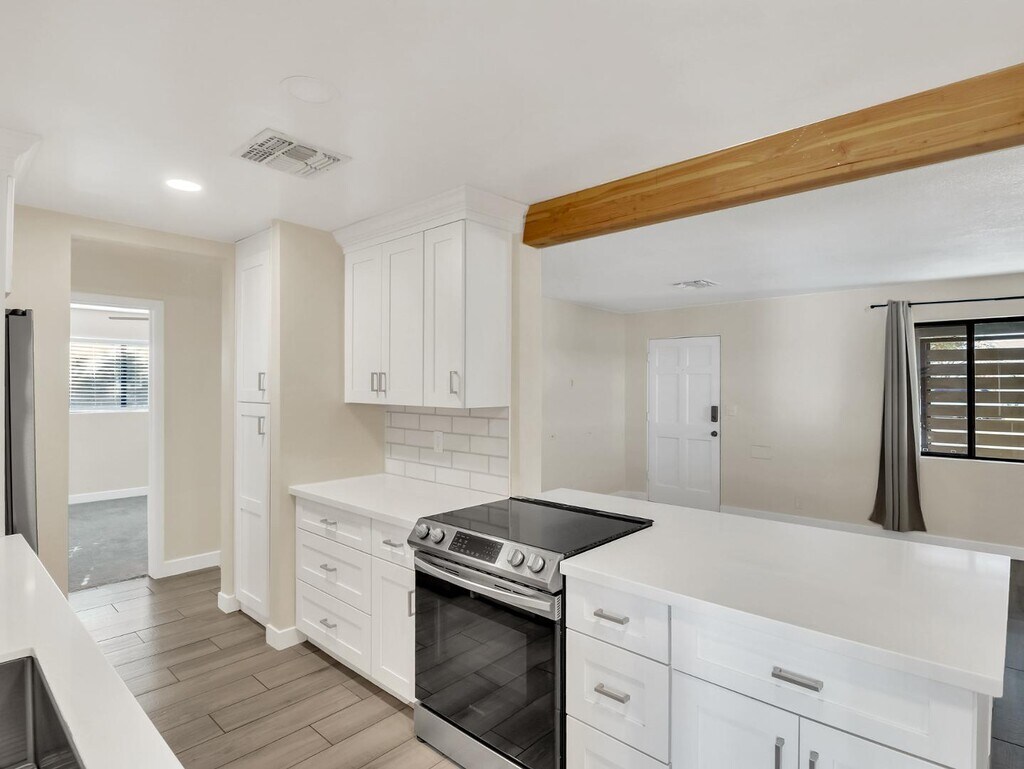 Great Modern and Clean Curb Appeal!! This beautiful House was recently remodeled!! Main House 2038 sqft offers open concept with living room open to dream kitchen,with quartz countertops,stainless steel appliances,white cabinets,bonus room with fireplace,upgraded bathrooms,detached casita 440 sqft with one additional bedroom,one bathroom,kitchenette. huge backyard with extended concrete driveway and rv gate,turf in front and backyard for easy maintenance.