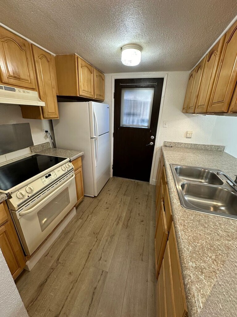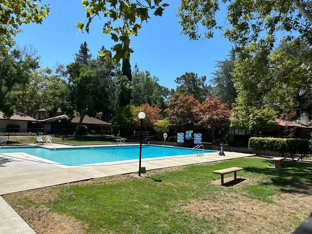 2 bed 1.5 bath, B unit, apx 973 sq ft. Newer paint and vinyl plank flooring throughout. Large living room with dining room. Half bath downstairs. Central air conditioning and forced air heating. Carport parking. Community pool and laundry. Close to shopping.