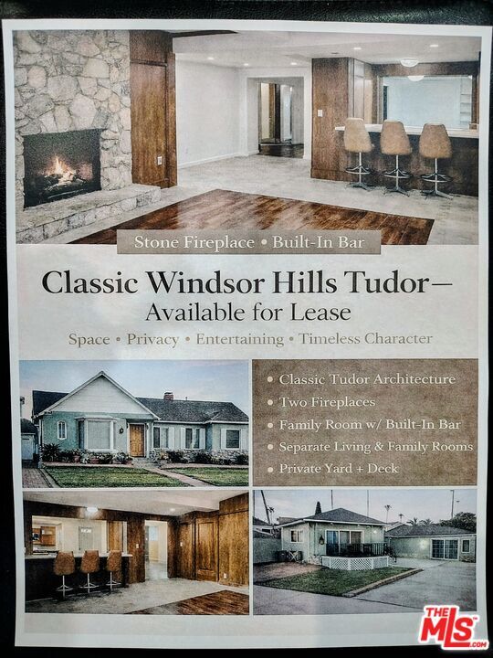 Welcome Home to your Classic Windsor Hills Tudor offering a Red Brick Paved Driveway, detached garage, covered carport, Red Brick Columns, Red Brick-Lined Walkway, with immediate curb appeal leading to a stone accented entry. Come In! To Classic Tudor Architecture, Timeless Character featuring Stone Fireplaces in Spacious Living And Family Rooms. A warm, wood-paneled Family Room with Built in Bar adds character and versatility, ideal for entertaining or media room. This charming 3-bedroom, 2-bath home offers 1,325 square feet of thoughtfully designed living space with hardwood flooring, recessed lighting, central air conditioning, on a generous 9,179 square foot lot offering a private, landscaped setting with a grassy lawn, paved patio areas, and a charming raised deck perfect for outdoor dining, relaxing evenings or hosting guests MLS# 25616933