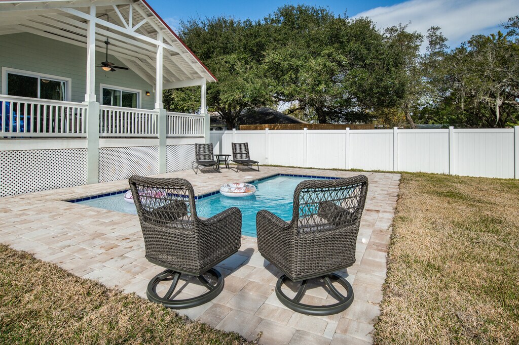 Experience the ultimate coastal lifestyle in this fully furnished 3-bedroom, 2-bath single-family home just a short stroll from the beach! Boasting 1,344 sq ft of stylish, comfortable living, this move-in ready home is available December 9th for a 6-month lease and comes with all utilities included power, water, sewer, high-speed internet, pool maintenance, and lawn care for truly carefree living. Relax and entertain in your private heated pool, gather around the cozy fire pit on cool evenings, or let your pets roam freely in the fully fenced yard. Inside, the open layout features a well-equipped kitchen and tastefully furnished living spaces, perfect for enjoying every moment. With ample parking, pet-friendly accommodations, and a prime location just steps from the beach, this home offers the perfect blend of comfort, convenience, and fun your ideal beach retreat awaits! Application fee is $100 per adult applicant. Background, credit check, proof of employment, references, and eviction search conducted. 6 month lease term. Power bill is capped at $175.00/month and Water/Sewer is capped at $75.00/month. Renters insurance required.