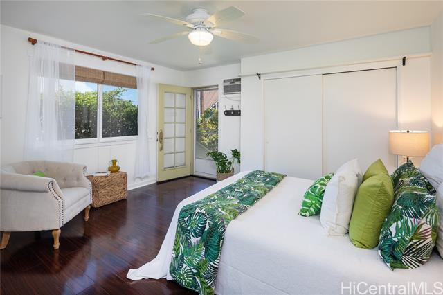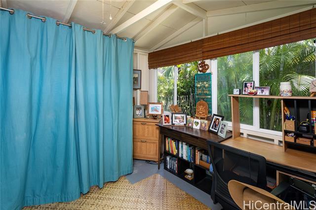 Welcome to your peaceful and charming home tucked into Coconut Grove with easy access to Kailua’s beaches, boutiques, eateries, coffee, and farmers’ markets. This 3 bedroom/2 bath home offers two primary bedrooms w/private entrances, providing flexible living arrangements. The home has a separate bonus room suitable as an office, game room, or workout space. Additionally, the carport features a versatile storage/workshop room. The outdoor space shines with shaded dining and lounging areas beneath a canopy of trees, an outdoor hot water shower. The fully fenced yard has three private lanai areas ideal for evening barbecues, entertaining, or simply unwinding outdoors. The home is equipped with a photovoltaic system paired with a Tesla backup battery for utility bill savings and power stability. There is AC in all three bedrooms. The front 2 bed/1 bath portion of the house is available at a discounted rent starting May 1st; entire house is available Oct 31st. Pets negotiable.