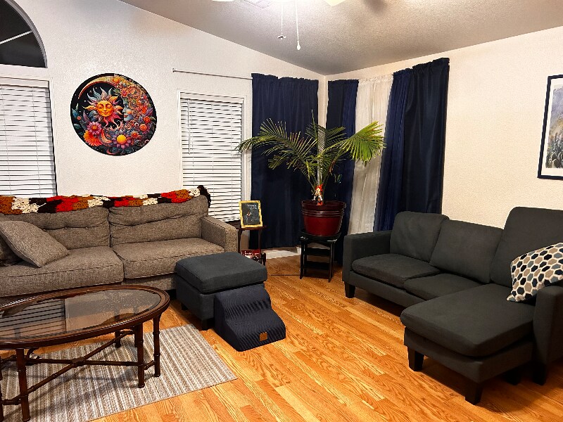 Property Id: 2302607 Four bedroom two full bath 2100 ft.² plus home on a half an acre. Feels rural yet close to Walmart banking Intel restaurants and shops. Rent includes all utilities. We are community and support one another. We have three small dogs in the house smoking permitted out of doors only cannabis, friendly limited alcohol use on site. Please text me at if you're interested. I also have an unfurnished room available, including all utilities at $725a month.