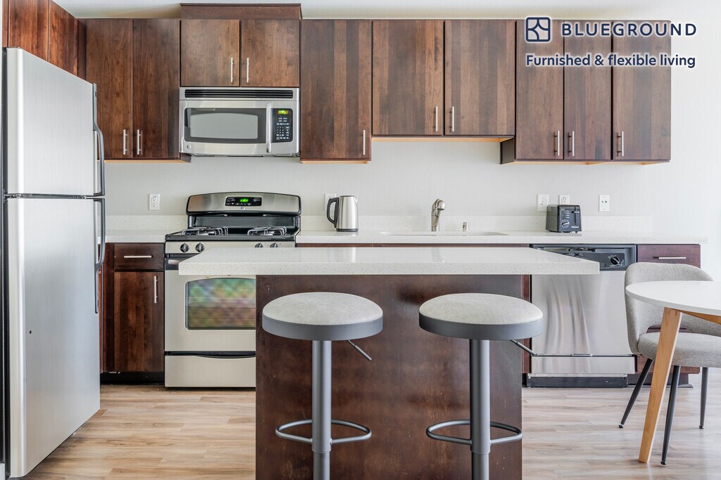 Feel at home wherever you choose to live with Blueground. You’ll love this cozy Mountain View furnished one bedroom apartment with its modern decor, fully equipped kitchen, and charming living room. Ideally located, you’re close to all the best that Mountain View has to offer! (ID #SFO1928) The advertised rate of $3,280/month is the lowest available price, based on a 2 month(s) and 1 day(s) stay with a move-in date of November 9, 2025. If you’re looking for a 1-year stay, the rate is $3,970/month. Rates vary depending on the duration of stay, season, and other parameters. For exact pricing and additional pricing components, please visit our website and enter your desired move-in and move-out dates. The rate is applicable when billed upfront; it can be higher if billed in multiple payments. Brokers are welcome to reach out. Were you looking for an unfurnished lease? Try Blueground instead and upgrade from unfurnished to furnished living: - Furnished at rates comparable to unfurnished - No setup or furniture costs - save thousands - Move-in ready - save time, just bring your suitcase Designed with you in mind Gorgeous furniture, fully equipped kitchen, smart TV, and a premium wireless speaker are just a few of the amenities you’ll find inside this one bedroom apartment. Ideally located in Mountain View, you’ll find a lot to love outside as well. When you’re ready to relax, you’ll be happy to discover every Blueground bedroom comes with superior quality mattresses, luxury linens, and cozy towels. We handle everything so you can simply show up and start living. This apartment also offers in-apartment laundry. Sleeping arrangements Queen Bed, 63in/160cm Amenities Building amenities unique to this one bedroom apartment include an on-site: - BBQ Area - Dryer - Elevator - Game room - Swimming pool - Washing machine - Lounge - Parking - Pets allowed - Playground Arrival and ongoing support The entire apartment is yours to enjoy! Throughout your stay, you’ll have access to our Client Experience team through the Blueground App. You can schedule additional cleanings, submit maintenance requests, and view our neighborhood recommendations with just a few taps. We’ll share all details upon confirmation of your stay. Ideally Located This furnished home is located in Mountain View, in Santa Clara County. It is named for the unbeatable views of the Santa Cruz Mountains. Situated in the southern end of the San Francisco Bay Area, residents enjoy the many parks, specifically Shoreline Park, which is the largest in Mountain View and includes an amphitheater and golf course. Go for a walk or run on the San Francisco Bay Trail. In addition, Stevens Creek goes through Mountain View and empties in Shoreline. A paved path for pedestrians and bikes runs alongside the creek, which is ideal for nature lovers. The nearby cities of Palo Alto, Los Altos and Sunnyvale are all easily connected by bus and rail service. Other things to note Building amenities may have an extra cost. This Blueground apartment has flexible lease options, allowing you to book it for one month, a year, or more. Pets are welcome, though weight limits and breed restrictions apply and may incur fees. Parking is offered based on availability and is subject to a fee. We take great pride in ensuring every photo displayed is shot in our own units with our actual furnishings. That said, we regularly refresh our decor and furniture arrangement, which may differ from what’s pictured. [SI]