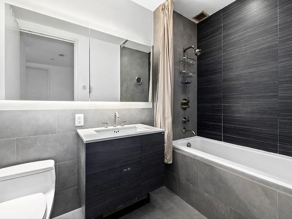 Cozy One Bedroom Apartment with an Open Concept living on Serene Corner of the Fifth Floor. The Beautiful apartment greets you with Brightness through High Floor and Floor to Ceiling Windows in every Room and Hardwood Oak Floor throughout the place. This specious Living space combines a Living Room that is open to the Kitchen Island. While the Kitchen encompasses plenty of Kitchen Cabinets, it is also specious and equipped with high end finishes including a Cosentino Silestone Kitchen Countertops, Viscaya class Back Splash, Bosch Stainless Steel Appliances – two doors Refrigerator, Dishwasher, Electric Stove & Oven to a large size Microwave. The Large Bedroom fits King Size Bed and has Large Size Closet. Complete Bathroom with Soaking Bathtub, Nickel Fixtures, Mogano accent Tiles, Floating Vanity, and huge Mirrored back-lit Cabinet. Large size Coat Closet at the entrance. In addition, There is a Large Walking Closet between the Bedroom and the Bathroom. And Virtual Doorman/Intercom in unit as well. In addition to all the Luxury Living of the Apartment, Residents get to enjoy all the amenities including Live-In Super, Part Time Doorman, Fitness Center, Bike Storage, Laundry Room accessible and provided at the Cellar of the building, On Sight -Independently Owned- Parking Garage and spectacular scenic Furnished Roof Deck overlooking the City. The Isabella stands conveniently in great location, a rather short walk to the C Train and to major transportations of A & G Trains and MTA buses to make your commute to the city as easy as can be.Situated on a gorgeous leafy block, The Isabella on its prime location is within close proximity to Atlantic Avenue and the home of the Brooklyn Nets, Barclay Center fabulous Restaurants and Shops, Fort Greene Park, Prospect Park, Brooklyn Museum, and The BAM Cultural Center. The options are endless and there’s so much to explore.