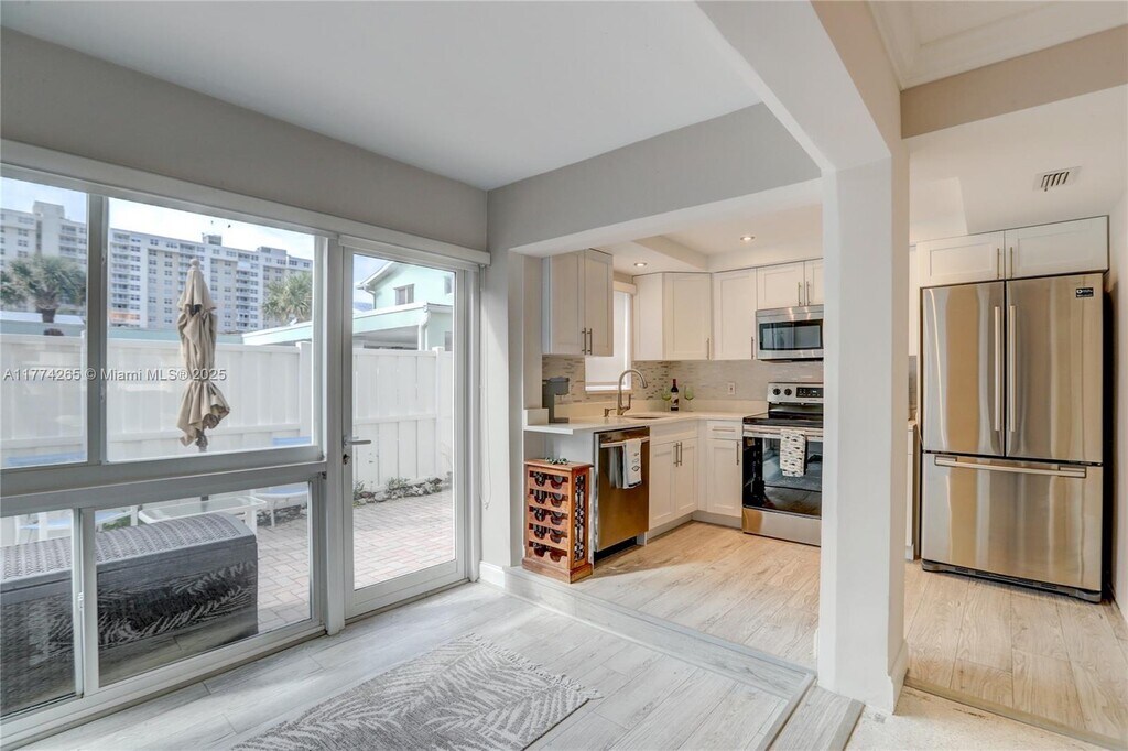COURTESY OF Galt Ocean Realty Inc Beautifully updated two-story townhome located just steps from the beach in a gated community on A1A in Lauderdale-by-the-Sea. This fully furnished annual rental features three bedrooms upstairs and two and a half bathrooms, along with a spacious layout that includes a large living room, dining area, and a modern kitchen. The home also offers additional storage and comfortable living spaces throughout. Step outside your front door to enjoy private beach access and the coastal lifestyle. A great opportunity to enjoy beachside living in a convenient and well-maintained community.