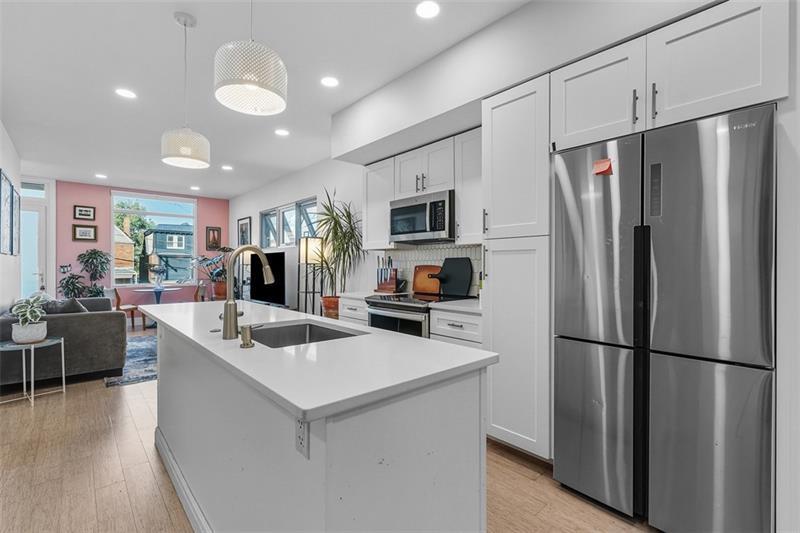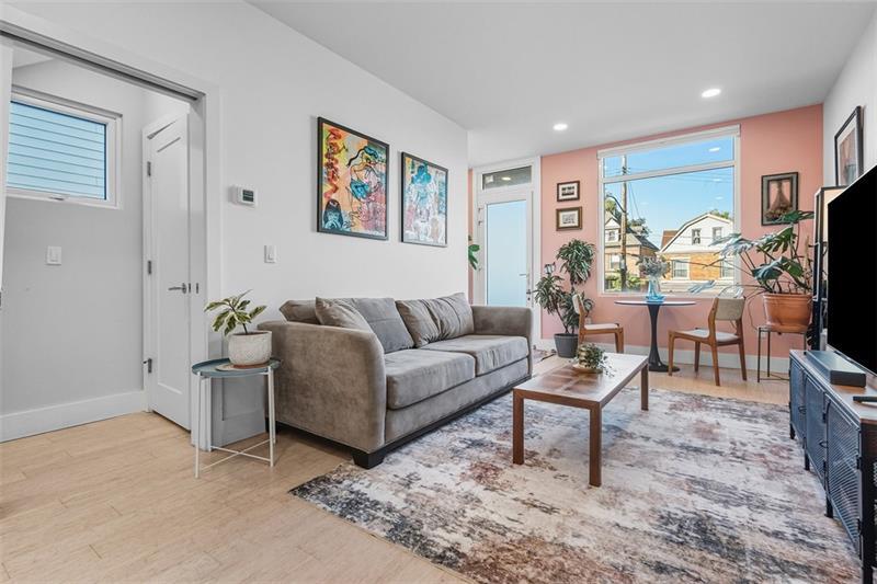 Welcome to 5454 Black Street! This 2020 modular home perfectly represents Pittsburgh's commitment to style and innovation. The front door welcomes you to a spacious open layout that seamlessly blends the main floor's living room, kitchen, and flex space. This versatile flex space can function as an extra bedroom or a quiet home office. Decorated with hardwood floors, ample natural lighting, and a neutral backdrop; the main floor is ideal for entertaining guests or spending a peaceful day at home. Upstairs features two bedrooms, 2 full baths, and a washer/dryer. Enjoy the additional perks of having a private rear deck, basement space for storage/fitness, and an integral garage that makes parking a breeze. In addition to aesthetics, this home is equipped with solar panels that can save you money on energy bills! Located minutes away from Highland Park, East Liberty, and Lawrenceville, the possibilities are endless.