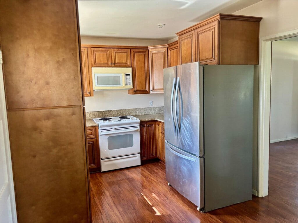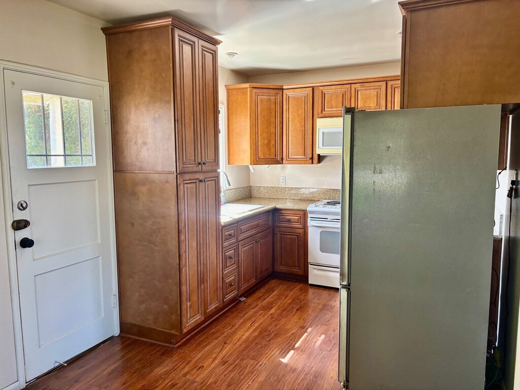 Charming 2 bedroom, 1 bathroom home Located in Ontario. Approximately 900 square feet of living space. Charming backyard with lush green grass and fruit trees. Quaint kitchen with oven, range, microwave, and fridge included in rental. Private laundry room in rear of house. Come see all this home has to offer!