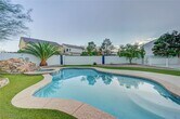 Experience refined indoor–outdoor living on a 10,000+ SF lot in Spring Valley. The backyard features a heated pool and spa with a rock waterfall, a spacious beachy area lit by bistro lights, a gas-plumbed BBQ, fresh herb garden, and raised rear walls for ample privacy. Inside, is an open floor plan with plenty of natural light, and a unique play area under the stairs with chalkboard walls and shelving. Spacious primary suite with custom walk-in closets. This home has Solar and a Tesla EV charger. Minutes from parks, shopping, dining, and the 215. Solar PPA up to $75/mo, landscaping, pool service, and tech fee for your portal included in rent. Renters insurance required.