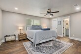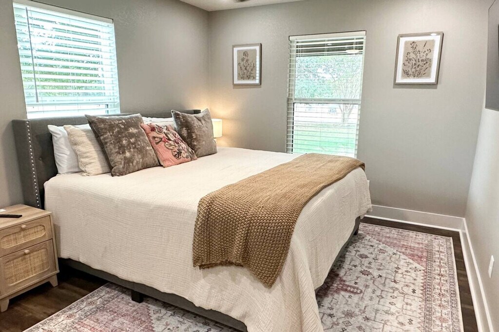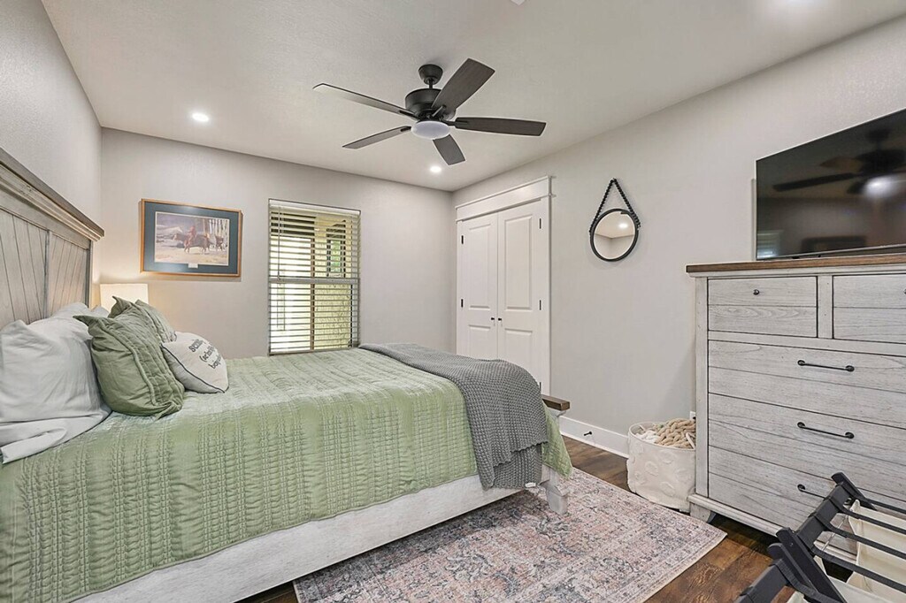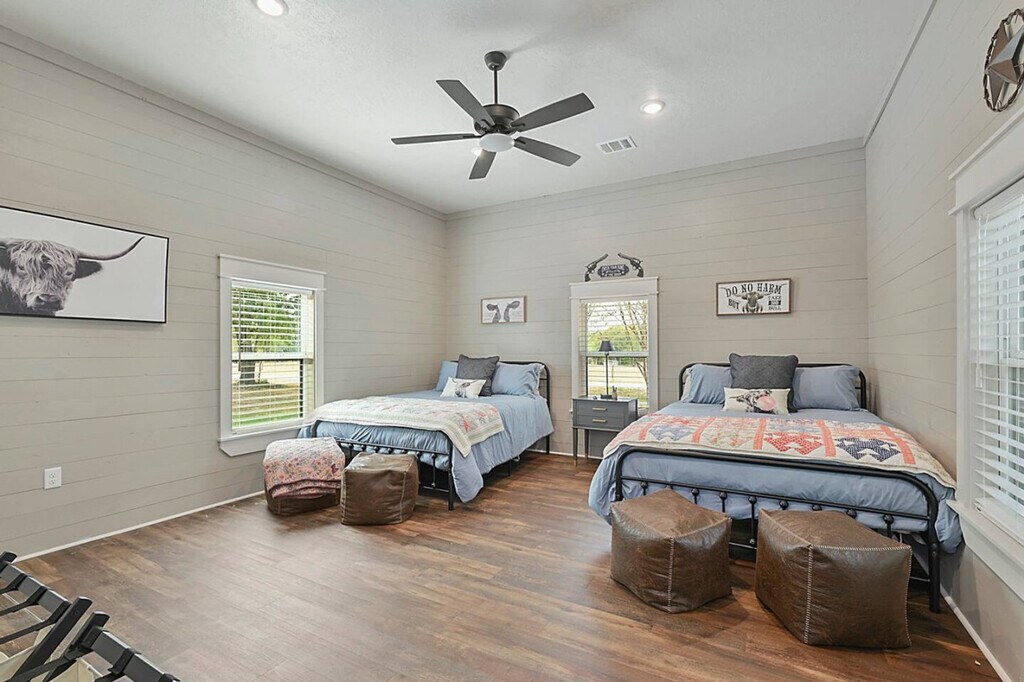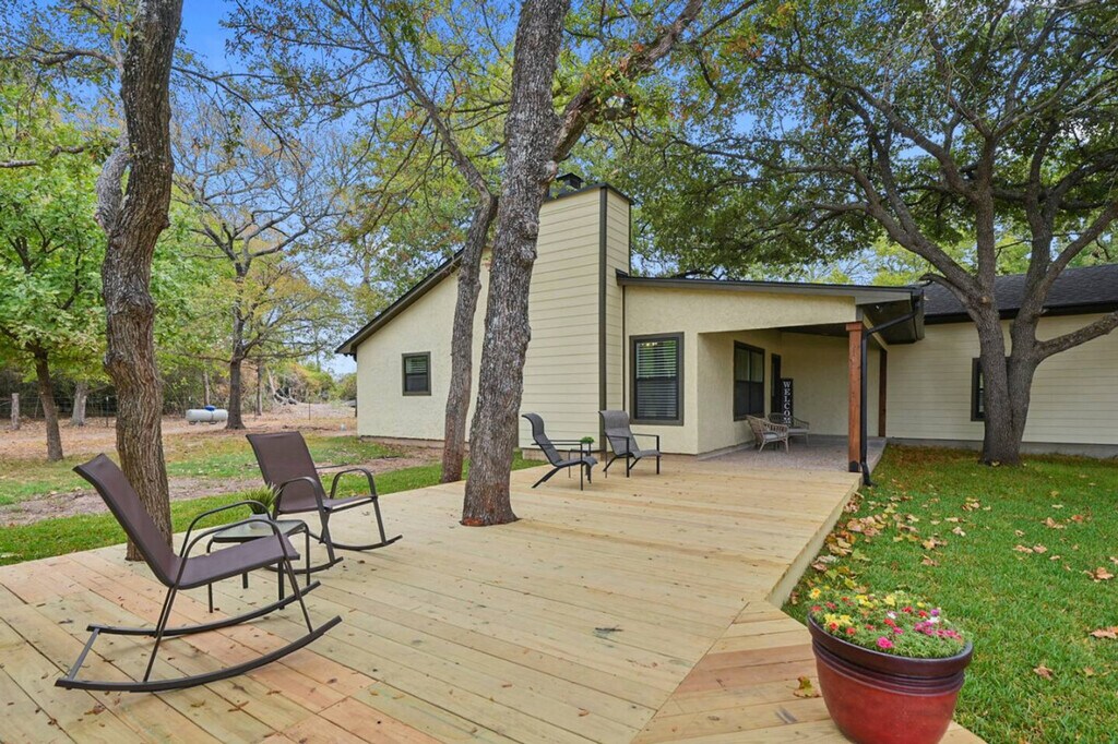 Feel at home in this renovated ranch-style home, your peaceful 100-acre getaway just 22–25 minutes from Texas A&M University. Perfect for game days, family gatherings, or a quiet countryside escape, this home combines rustic elegance with modern comfort in a truly serene setting. This spacious and comfortable home features a chef-style kitchen with stainless steel appliances, granite counters, and an inviting eating bar. Gather and relax by the rock fireplace in the open dining area, perfect for family meals, and enjoy the large smart TV. Fresh linens and cozy décor are provided in every room. Driveway parking is available for 4–6 vehicles. Enjoy sunset views and abundant wildlife on 100 acres of seclusion. This home is less than 25 minutes from Kyle Field, and close to downtown Bryan's shops, restaurants, and entertainment. Messina Hof Estate Winery and Joe’s Place are also nearby. Guests must be a minimum of 25 years or older to reserve the property and digitally sign the booking agreement prior to check-in. Smoking is not allowed in or on the property, and a $400 fee will be retained to deodorize the home if evidence of smoking is detected. Do not turn the thermostat below 69 during the summer as the unit could freeze, and the guest will be charged the cost to repair the heating/cooling system. When leaving in the summer season, turn the thermostat up to 80 degrees. When leaving in the winter season, turn the thermostat down to 60 degrees. People other than those accounted for in the booking agreement may not stay overnight on the property; if unauthorized guests are found, a fee of $300 will be retained plus $25 per person. This property is not pet-friendly. Fires are not allowed on the property except in the firepit when there is not a burn ban in effect, and absolutely no candles may be burned in the house or on the property. Guests must wait for the gate to fully open before entering and be sure when exiting that the gate has closed behind them. Guests must remain in the fenced area around the house unless arriving or exiting the ranch. Do not roam the ranch. Owners personal items and fridge are located inside the pantry/laundry, please refrain from consuming any and all items located within the pantry/laundry room area. The property may have one or more actively recording cameras overlooking the entrance, driveway, and backyard areas, which record audio and video. All devices are on the exterior of the property. [SI]