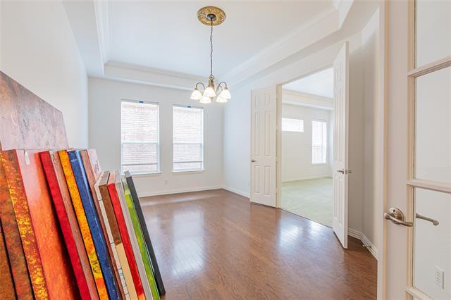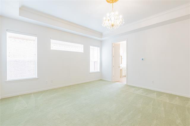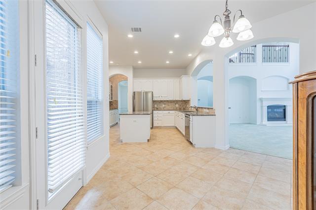 Freshly painted home in the gated Chase At Stonebriar neighborhood with recently replaced appliances, roof shingles and HVAC. Island kitchen is open to two story living room and has granite counters and stainless steel appliances installed new in April, 2025. Primary bedroom downstairs with bedrooms located upstairs. One of the five living rooms could easily have a wall installed to make a 4th bedroom as it connects to a jack and jill bathroom. Second floor also has open game room, a large craft and a media room.