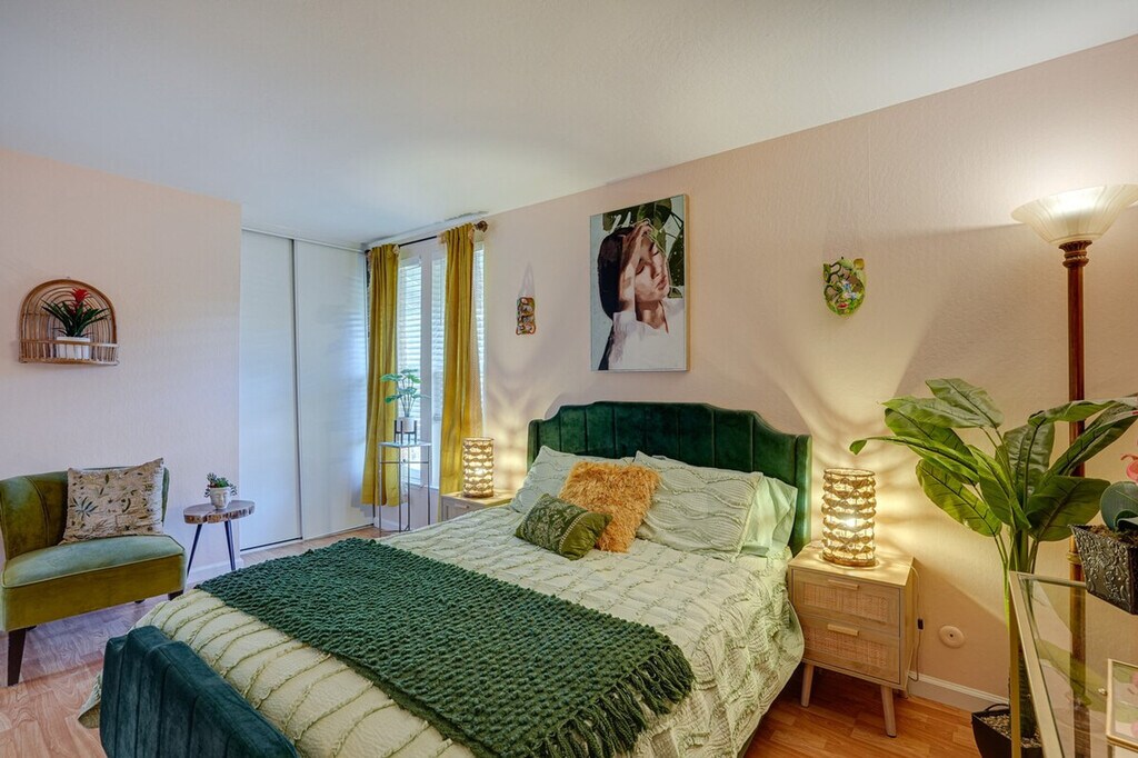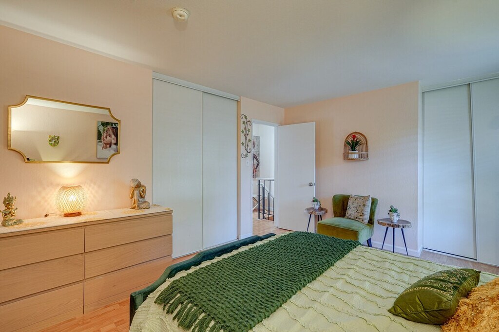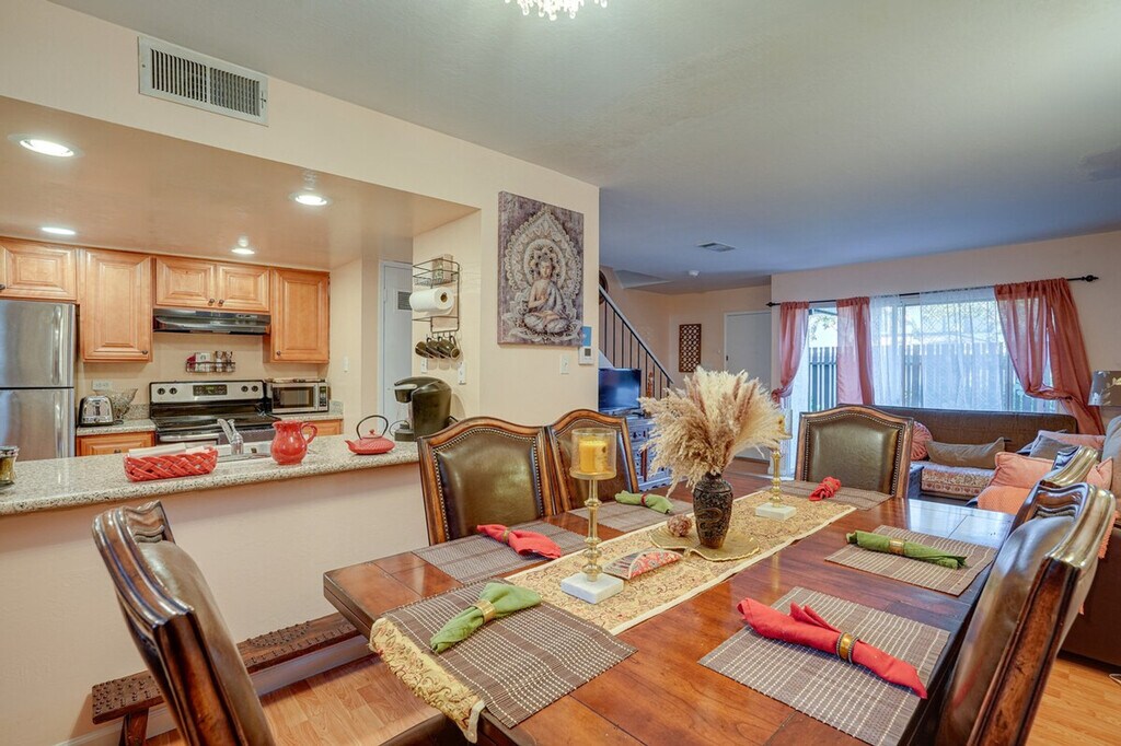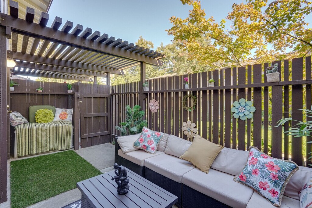 You'll be California dreaming in this charming 2-bedroom, 1-bathroom Concord townhome. Ideally located, this property offers easy access to nearby attractions such as the Lime Ridge Labyrinth and Markham Regional Arboretum. After a day of exploration, retreat to the comfortable townhome and relax in its inviting ambiance or on the private patio. Plus, take a refreshing dip in the community pool or embark on a scenic hike nearby. Your ideal vacation retreat awaits! This townhome welcomes pets with a fee and features a private patio and free WiFi. The fully equipped kitchen includes a refrigerator, stove and oven, dishwasher, microwave, coffee maker, coffee grinder, dishware and flatware, spices, blender, Crockpot, toaster oven, and cooking basics. The indoor living area offers a smart TV with cable, a dining table, and a selection of books. Outdoor living is enhanced with seating and a pergola. Pets are welcome with a $50 fee plus additional fees and taxes. Parking is available with a carport for one vehicle and a driveway for another. Ideally located, this property offers easy access to nearby attractions such as the Lime Ridge Labyrinth and Markham Regional Arboretum. Enjoy the convenience of nearby scenic hikes and the community pool for relaxation. This 2-story townhome offers step-free entry, but both bedrooms are located on the 2nd floor and require steps to access. The property enforces a no-smoking policy and prohibits events, parties, or large gatherings. Guests must be at least 25 years old to book. Additional fees and taxes may apply, and a photo ID may be required upon check-in. [SI]