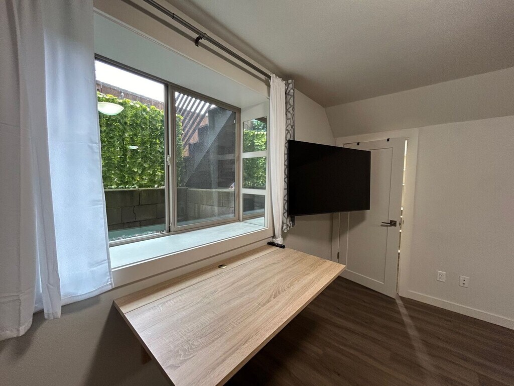 Lovely studio condo now available for lease in highly desired University Park Neighborhood! Complete with modern upgrades and new construction, this is a perfect unit at a great price! Modern finishes, stainless steal appliances, washer and dryer, Murphy bed, mounted smart TV (optional), closet build ins, LVP flooring, spacious kitchen cabinets, private entrance and plenty of window light and storage make this unit extra special. Available now! Call for your private showing! Full background, credit and rental history check will be required with application. 2.5 times the rent in monthly income required.