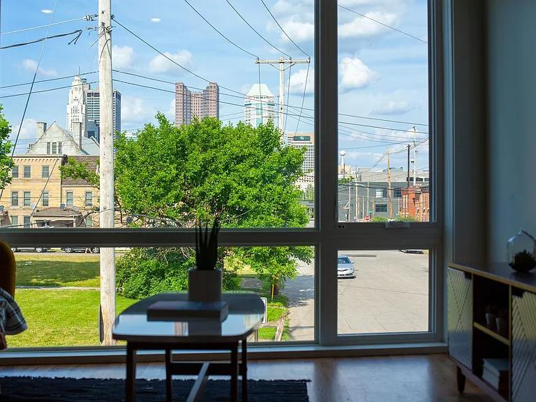 Now offering 2 months free and $250 Amazon Gift Card! This modern 1BR/1BA offers oversized windows with skyline views, solid white oak hardwood floors, and a spacious walk-in closet with barn door. Stay comfortable with your Nest thermostat, plus the convenience of an in-unit washer/dryer. Experience modern living at 548 W. State Street, a boutique 1BR/1BA in Columbus’s thriving Franklinton Arts District and Scioto Mile Area. Wake up to skyline views through oversized windows, relax with hardwood floors and designer finishes, and enjoy the convenience of quartz countertops, stainless steel GE appliances, Nest thermostat, and in-unit washer/dryer. Residents love the rooftop terrace + lounge, free storage (6 months), and pet-friendly vibe. Walk to galleries, dining, nightlife, or Downtown & Short North in minutes. This boutique community has limited availability — schedule your tour today and claim your spot at 548weststate.