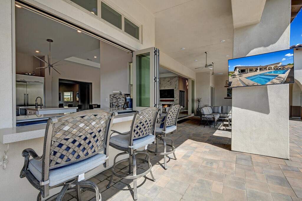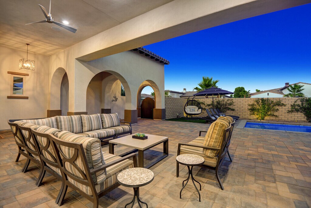 Gabriel FrancoBrand new listing! Welcome to your spectacular dream vacation home located in the prestigious Griffin Ranch gated community. Prepare to be immersed in total luxury and relaxation in this beautiful resort oasis boasting a spacious open layout with over 4,150 sqft that harmoniously balances contemporary design with traditional comfort. Entering through the front gate you're immediately transported to your own vacation paradise. The massive courtyard greets you with custom pavers, large Pebble Tec salt water pool and spa, misting system, 2 TV's, heat lamps, built-in BBQ, mini fridge, 8-seat outside dining table, 6 lounge chairs, 2 lighted umbrellas, and a large conversational sectional. The huge firepit is perfect for cozying up on those cool desert evenings, or you can make your own tee time with the lighted 5-hole putting green. There is also an additional outside lounging area off the den with a firepit and beautiful mountain views!Bring the outside in with 10 foot tall, 22 foot wide double sliding glass doors that open the living room to the courtyard creating the ultimate indoor/outdoor living experience. Too many amenities to name, this home won't last! Currently available April - September. Rate varies, discounted rates for summer rentals.