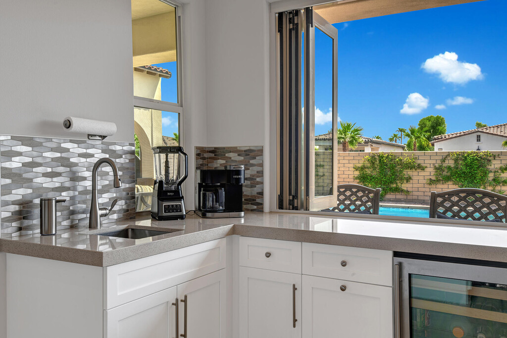 Brand new listing! Welcome to your spectacular dream vacation home located in the prestigious Griffin Ranch gated community. Prepare to be immersed in total luxury and relaxation in this beautiful resort oasis boasting a spacious open layout with over 4,150 sqft that harmoniously balances contemporary design with traditional comfort. Entering through the front gate you're immediately transported to your own vacation paradise. The massive courtyard greets you with custom pavers,large Pebble Tec salt water pool and spa,misting system,2 TV's,heat lamps,built-in BBQ,mini fridge,8-seat outside dining table,6 lounge chairs,2 lighted umbrellas,and a large conversational sectional. The huge firepit is perfect for cozying up on those cool desert evenings,or you can make your own tee time with the lighted 5-hole putting green. There is also an additional outside lounging area off the den with a firepit and beautiful mountain views! Bring the outside in with 10 foot tall,22 foot wide double sliding glass doors that open the living room to the courtyard creating the ultimate indoor/outdoor living experience. Too many amenities to name,this home won't last! Currently available April - September. Rate varies,discounted rates for summer rentals.