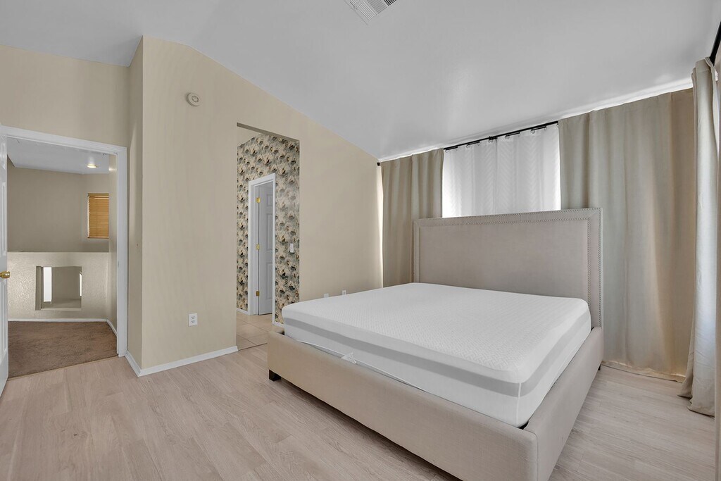 Just Minutes from the Las Vegas Strip & Airport! This spacious 3-bedroom, 3-bathroom two-story home offers modern living in a prime location. Featuring soaring vaulted ceilings, an open floor plan, and abundant natural light, the home feels both inviting and impressive. The kitchen is equipped with all stainless steel appliances, seamlessly blending style and function. Bedrooms are generously sized, with plenty of storage and comfort throughout. Conveniently located just minutes from the Las Vegas Strip, Allegiant Stadium, and Harry Reid International Airport, this home combines lifestyle and convenience. The property will be offered partially furnished. This property has FULL SOLAR. Therefore no power bill.