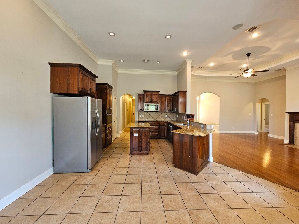 Welcome to a stunning 4-bedroom, 2.5-bathroom home located in the charming Madisonville, LA. This home boasts a plethora of amenities that cater to a comfortable and luxurious lifestyle. The interior features beautiful wood and tile flooring, high ceilings, and a gas fireplace that adds a cozy touch. The kitchen is a chef's dream with its kitchen island, bar seating, and a pantry for extra storage. The primary bathroom is a sanctuary with a soaker tub, perfect for unwinding after a long day. The home also includes a formal dining room, a bonus room, and a laundry room with washer/dryer connections. The bedrooms are carpeted and the primary bedroom features a walk-in closet. The exterior of the home is just as impressive with a fenced yard, a covered patio perfect for outdoor entertaining, and a 2-car garage. The home also features window blinds for privacy and recessed lighting for a modern touch. The split floor plan offers a unique layout that maximizes space and functionality. This home truly has it all!