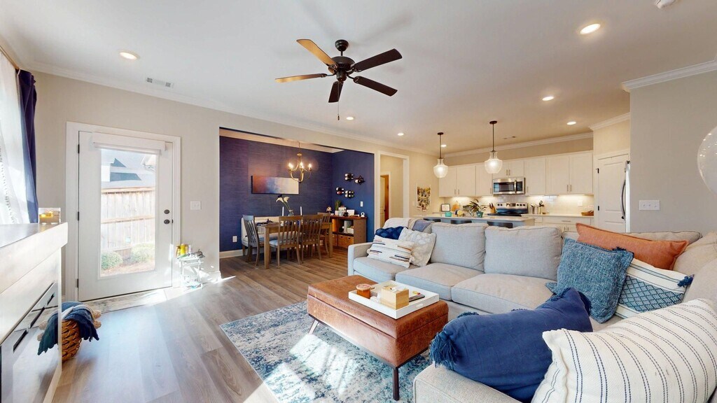 Welcome to this well maintained two story, 3-bedroom, 2.5-bathroom townhome located in the Woodward Oaks subdivision. This property offers a perfect blend of comfort and convenience, with its spacious rooms and modern amenities. The home is nestled in a friendly neighborhood that boasts a community pool, pickle ball courts, walking trails and a playground, providing endless opportunities for outdoor fun and relaxation. The property is also pet-friendly, welcoming up to two pets. Experience the perfect blend of community living and private comfort in this beautiful Auburn home. LVP floors in main living area. Open floor plan with kitchen/living/dining. Kitchen boasts plenty of cabinet space, large island, quartz counter tops and stainless appliances. Fenced in side yard with patio. Great primary suite on the main level with ensuite bath featuring tiled shower and walk in closet. Upstairs offers 2 spacious guest rooms, guest bath, and loft area at the top of the stairs. Rear entry 2 garage. Close to Yarbrough and Woodland Pines elementary, and will be just down the street from the new Plains High School projected for fall of 2028. Virtual Walkthrough: