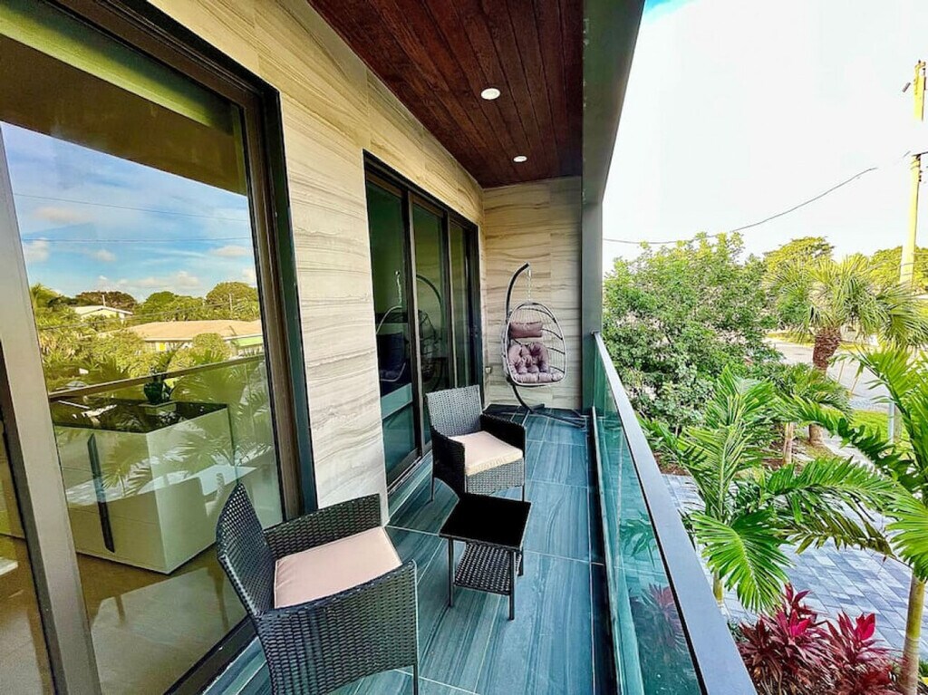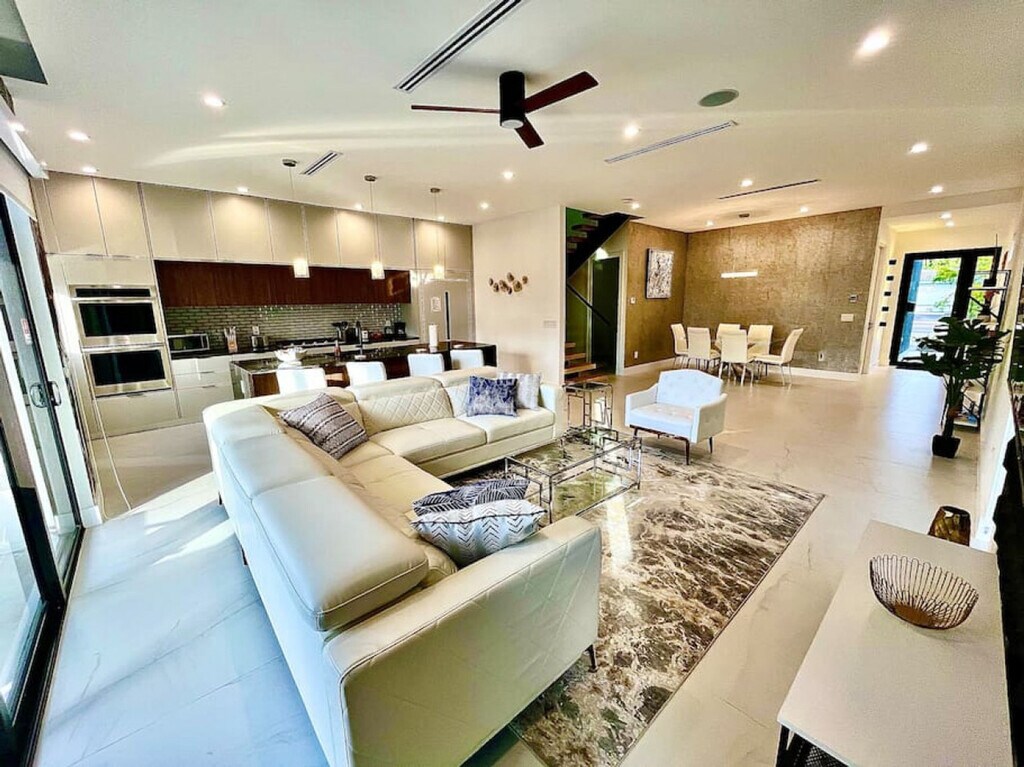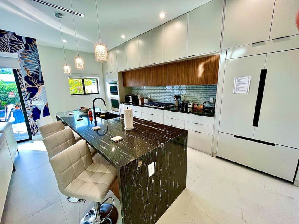 Feel at home in this newly built modern 4-bedroom home with 3.5 bathrooms, floral accents, and a clean, welcoming space. This home is nestled in the safe and quiet town of Victoria Park. Enjoy the chef's kitchen and pool. Three of the four rooms upstairs come with plenty of space, privacy, and balcony access. Pets are welcome with a $20 flat fee per night for 1 pet and a $30 flat fee per night for 2 pets. A maximum of 2 pets per stay is allowed. This centrally located home is blocks away from a park, 5 to 10 minutes away from Las Olas and the beach, and blocks away from a grocery store and Walgreens pharmacy. Smoking is allowed outside on the patio, and any burn marks on outdoor furniture or evidence of smoking inside the home will cause an automatic smoke remediation fee of $350. Parties and events are strictly prohibited, and any reports or evidence of a party or organized event will result in an automatic forfeiture of your stay without a refund. Fort Lauderdale city ordinance quiet hours are from 10pm-8am. There are 8 outdoor cameras and 4 doorbell cameras located around the entire perimeter of the building. Check-in time is from 4:00pm -12:00am and check-out time is 11am. [SI]