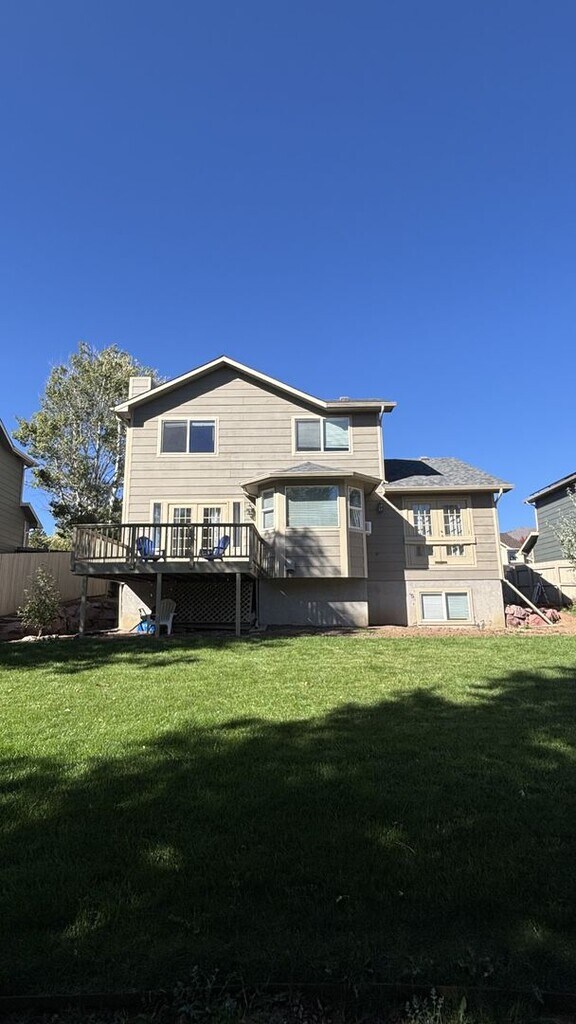 Amazing home in desirable Pinon Valley Neighborhood. Walk to park and open space. Bright and open. Large formal living and dining room. As you step into the cozy family room featuring French doors, which then leads to a private wood deck for your entertainment. That also opens up the large kitchen with island. Plenty of counter space and cabinets. Upstairs has 3 bedrooms to include the master suite with a large walk in closet and 5pc bathroom. There is an additional full bath upstairs. The basement is considered unfinished but has so many possibilities.