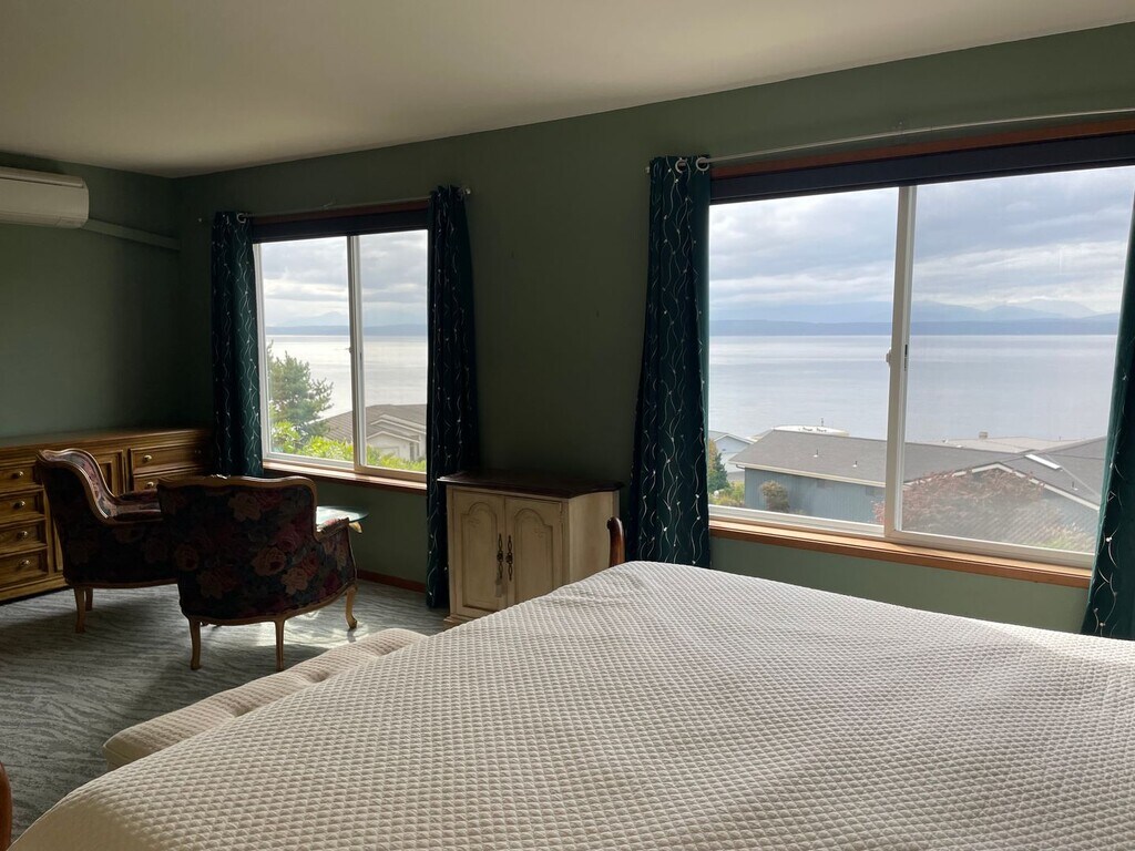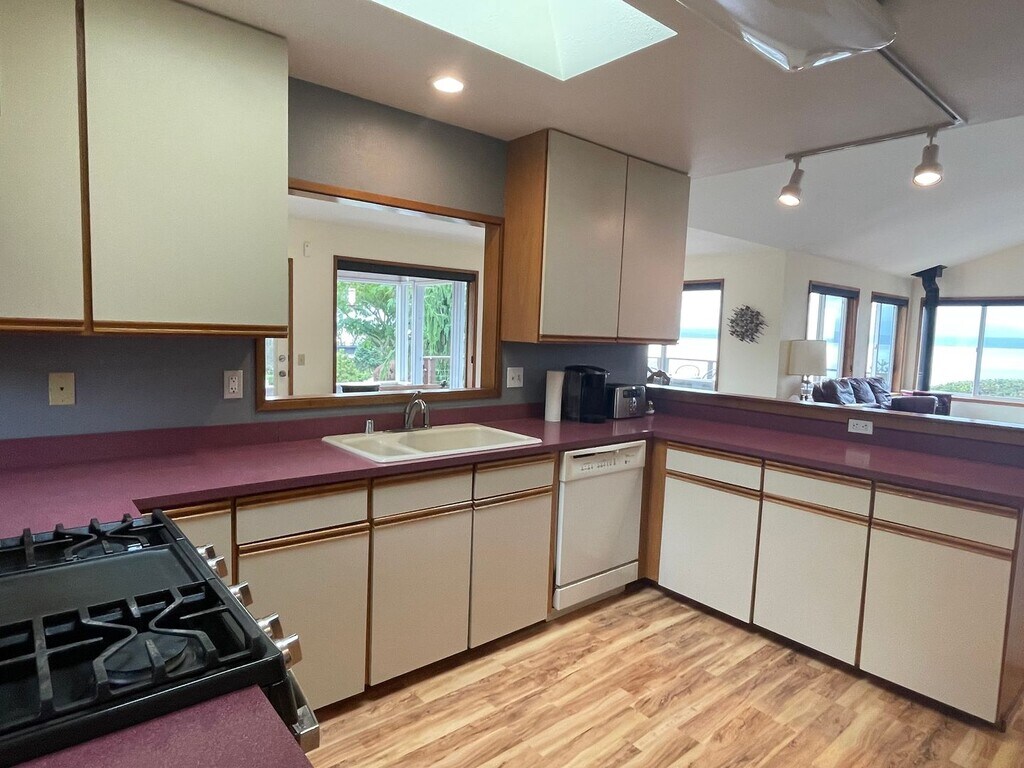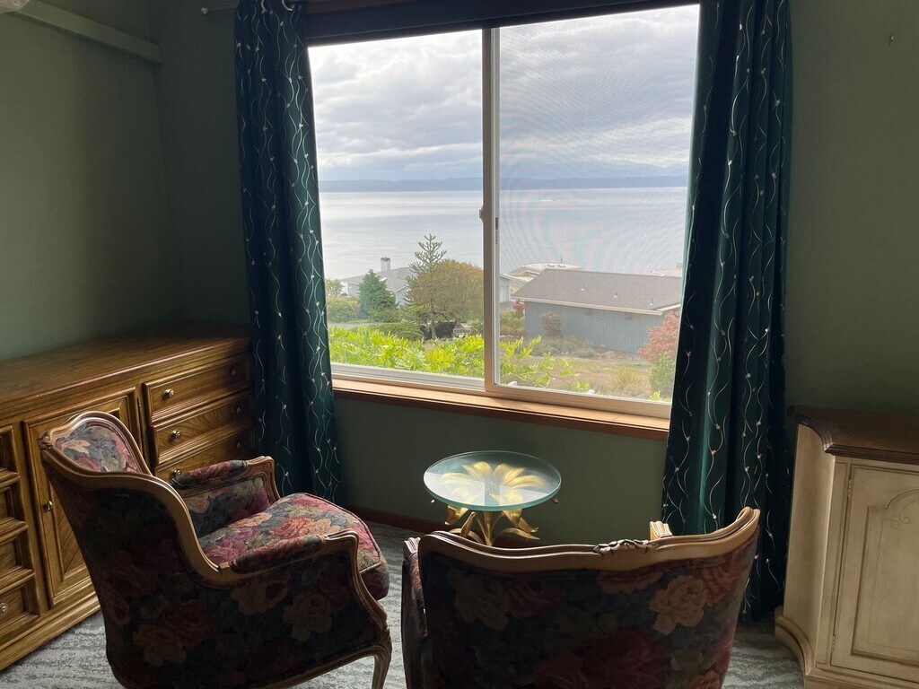 Lovingly cared for home located in the Windmill Heights community! Gorgeous west facing view to be enjoyed from the view deck and nearly every room of this home! Admiralty Inlet, Olympic Mountains, fabulous sunsets, eagles, shipping lanes, migrating whales and so much more! Three bedrooms and 2 baths with community stairs to the private beach, bring your kayaks or simply stroll over 5 miles of beach! Two bedrooms with a bonus room, office, or guest room! Primary bedroom is quite large with a private bath and walk-in closet. Second bedroom and bonus space is located on the entry level. Cooks’ kitchen has all that you need with nice appliances and ready for you! Picture windows in the large living area and propane stove with library shelves and ladder! Stained glass windows are very special and add charm to this home. Covered porch to the entry is the perfect location for comfy chairs to watch the winter Whidbey storms. One car garage with a freezer and work bench and access to the house. Maytag Neptune washer and dryer are included and the flat screen television without warranty. This is a pet and smoke free home and property. Tenants pay all utilities and maintains landscape. Please do not access property on your own. One year lease to start.
