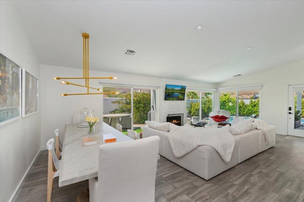 Located on an elevated corner lot in the sought-after La Quinta Cove,this beautifully maintained home offers a unique blend of style,comfort,and natural surroundings. Just steps from scenic hiking trails,the property captures impressive mountain vistas and a sense of peaceful seclusion. Inside,you'll find a light-filled,open floor plan that promotes easy living and entertaining. The living area features a sleek fireplace and flows effortlessly into a well-defined dining space,perfect for both casual meals and special occasions. The kitchen is thoughtfully designed with quality appliances,ample counter space,and a large island that serves as the heart of the home. The primary bedroom suite is a private retreat,complete with outdoor access and a peaceful sitting nook. The ensuite bathroom includes a spacious walk-in shower,double vanities,and plenty of storage. Outdoor living is equally inviting with several patio areas designed for lounging,dining,and entertaining under the stars. A covered section provides shade and comfort for year-round use. Additional features include updated HVAC systems for energy-efficient comfort. Whether you're looking for a tranquil escape or a stylish space to host,this home captures the best of desert living.
