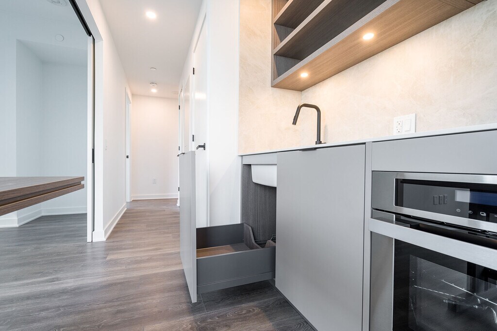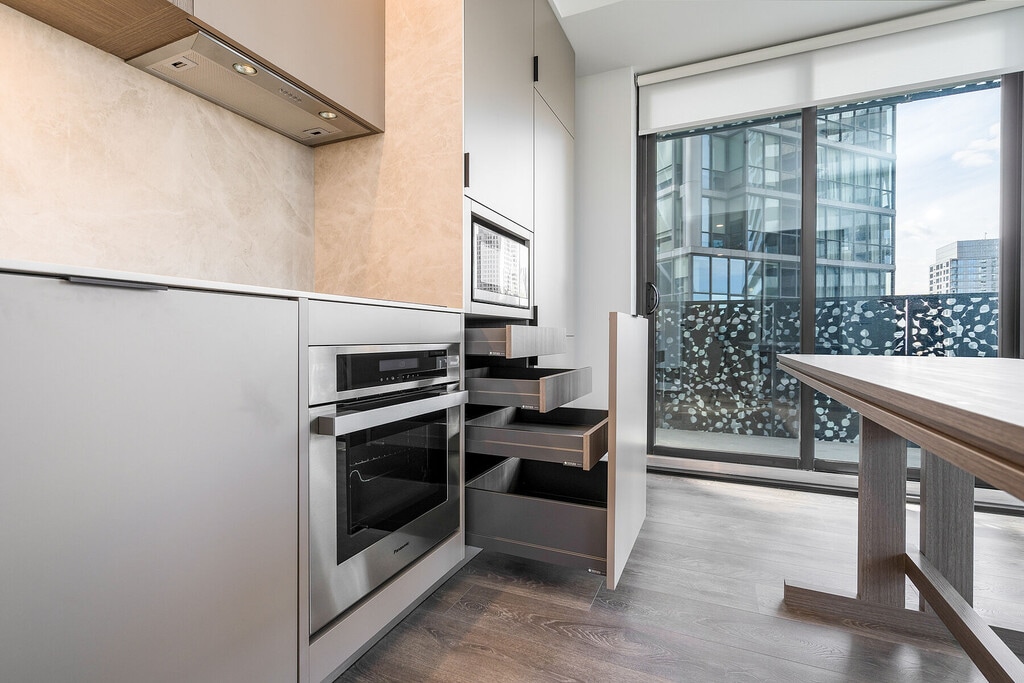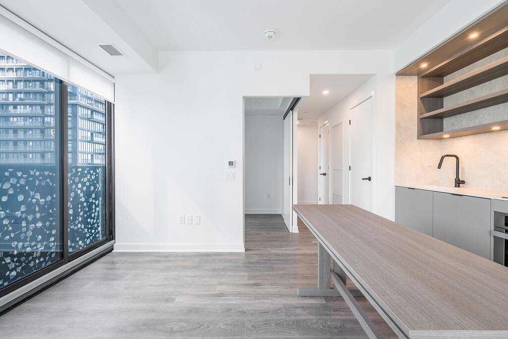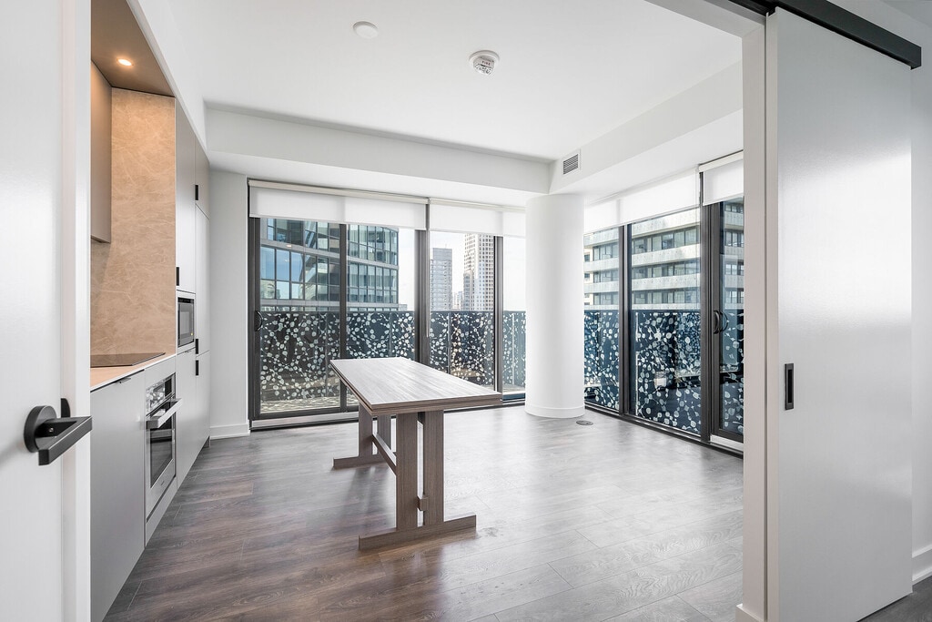 Experience refined living at 55C Bloor Yorkville Residences, a 48-storey architectural landmark by MOD Developments and architects Alliance, with interiors by Cecconi Simone and landscapes by Janet Rosenberg Studio. Rising above Charles Street East, this residence embodies contemporary design, premium materials, and exceptional attention to detail. This stylish 582-square-foot one bedroom plus den suite offers modern comfort and convenience with 9-foot smooth-finish ceilings. The contemporary kitchen features custom-designed cabinetry by Cecconi Simone, Panasonic appliances with integrated fridge, induction cooktop, stainless steel oven, hood fan, dishwasher, and microwave. A matte-black pull-out faucet and Lighting-Emitting Diode under-cabinet lighting are chic features, and a movable dining table is included, perfect for entertaining or intimate meals. The open-concept living area offers a north-west view with a walkout to a spacious balcony showcasing CN Tower views and custom blinds for privacy. The bedroom provides a serene retreat with a large north-facing window, closet, and a three-piece ensuite bathroom with hallway access for convenience. The bathroom features a walk-in shower with niche, rain head, handheld shower, under-sink storage, and built-in shelving. The den, equipped with two sliding doors and a large window, serves perfectly as a second bedroom, office, or nursery. One locker is included with the unit for extra storage. Residents enjoy over 20,000 square feet of amenities, including a fitness studio with virtual cycling, boxing area, movement and yoga spaces, steam rooms, co-working lounges, outdoor terraces with barbecues, and the rooftop C Lounge, a double-height indoor-outdoor retreat with caterer’s kitchen and skyline views. The building also offers a pet spa, refrigerated parcel room, guest suite, secure bicycle parking, and 24-hour concierge. 55 Charles sits among all things beautiful and stylish. Its unbeatable Bloor Yorkville location allows residents to experience the best of Toronto. Shop at internationally renowned designer stores from Prada to Hermès to Tiffany & Co. then dine at Yorkville’s elegant restaurants or browse exhibits at the Royal Ontario Museum. 55 Charles is also steps from The University of Toronto and Toronto Metropolitan University. Getting around is effortless: the Hayden entrance of Bloor–Yonge Station is a two-minute walk, and the Don Valley Parkway is just seven minutes away.