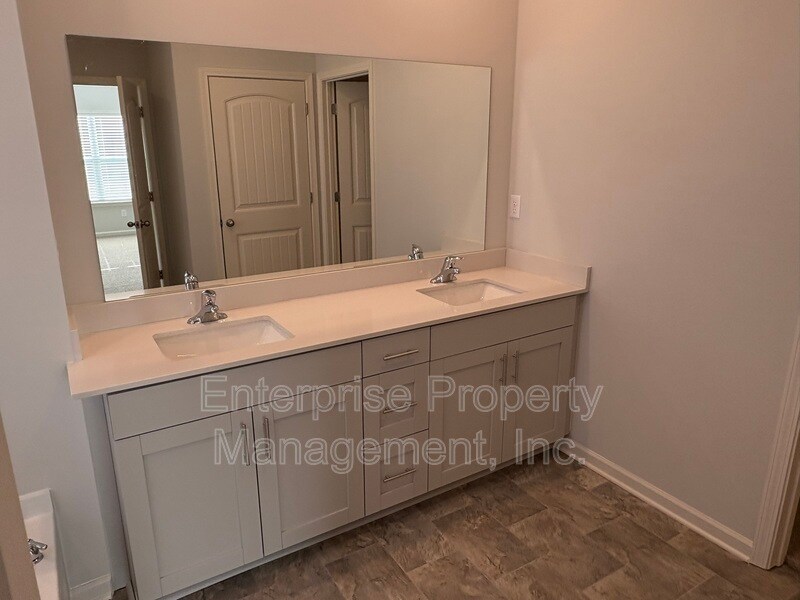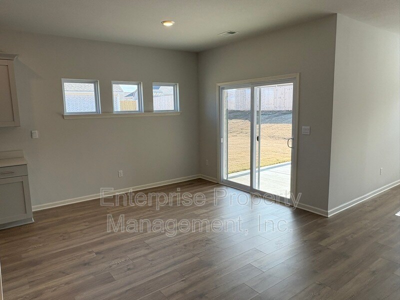 This house will be available to lease from Enterprise Property Management, Inc as soon as January 1, 2026! This is NOT a furnished home. These pictures show a furnished house to convey how this home COULD be furnished. Please be aware that NONE of the furnishings pictured here will remain in the property upon its rental. Introducing the Dover Plan! The Dover Floorplan includes many contemporary features, and an open-concept design and 9’ ceilings enhance the wonderful feel of this home. The kitchen includes a large island perfect for bar-style eating or entertaining, a walk-in pantry, and plenty of cabinets and counter space. The dining room overlooks the covered porch, which is a great area for relaxing and dining al fresco. The large Primary Bedroom, located at the back of the home for privacy, can comfortably fit a king-size bed, and includes an en suite bathroom with double vanity, separate linen closet, and a large walk-in closet. Two other bedrooms share a second bathroom. The laundry room is located right off the garage entry, convenient to all bedrooms. All homes will feature our Home Is Connected, Smart Home Technology Package. Pictures, photographs, colors, features, and sizes are for illustration purposes only and will vary from the homes as built.