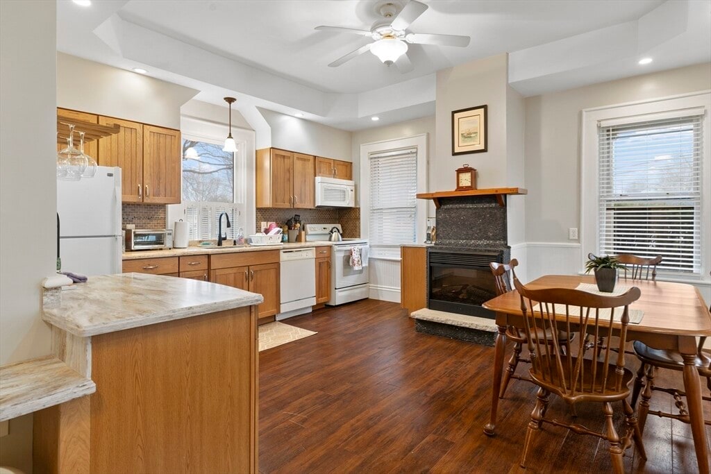 CANCELLED OPEN HOUSE DUE TO BLIZZARD,SAT FEB 7TH! SEE AGENT FOR SHOWINGS. Beautifully decorated and well maintained two bedroom first floor Duplex close to the ocean,Hingham Shipyard. All major utilities included in monthly rent. Spacious modern Kitchen with dining area and gas fireplace. The bright Living room boasts crown molding,wainscoting,gas fireplace,bay window with high ceilings. The molding,wood paneled walls and high ceilings continue into both bedrooms,with ample room for a study desk in one and a coffee table in the Primary. The updated bathroom has a bath with shower and granite countertop vanity. Washer & Dryer are located in a separate walk in Laundry room with storage pace. Beautiful hardwood floors throughout. Exclusive use of covered deck. Enquire about use of separate,unheated office and storage shed. Close to commuter rail & Ferry,Hingham and Weymouth for restaurants and shopping. Minutes to George E. Lane Beach,Webb Memorial State Park & Great Hill P MLS# 73474695