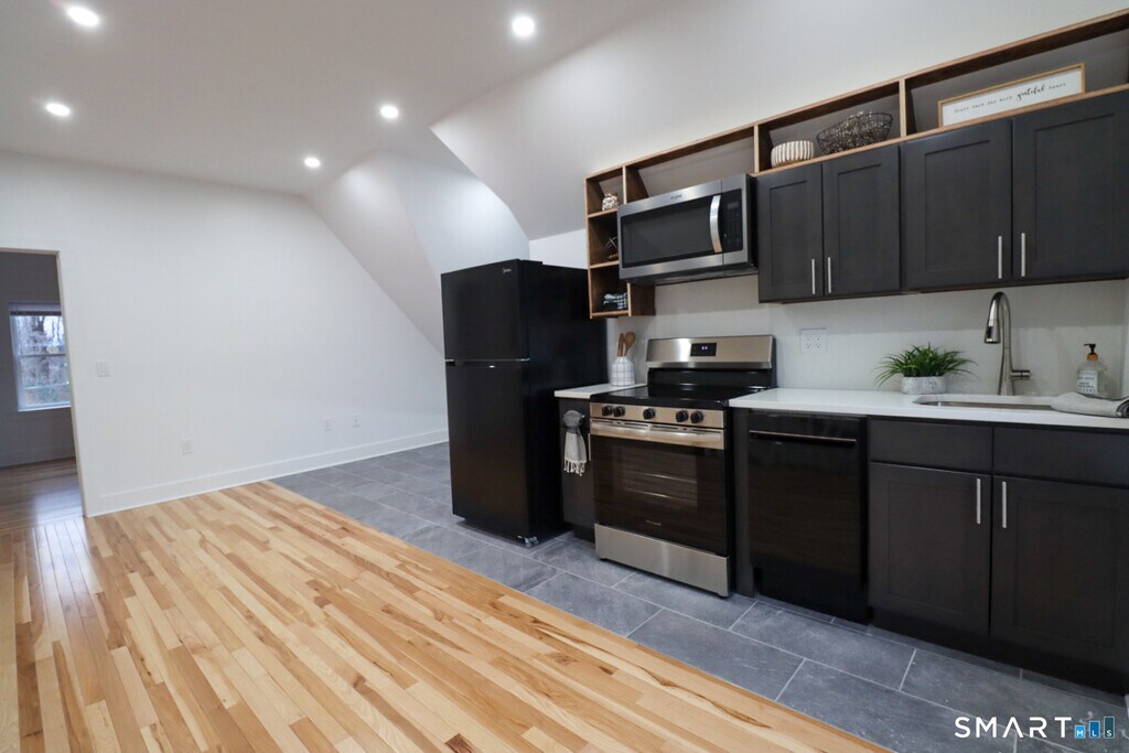 Call for Availability - A charming entryway and staircase create a warm, inviting first impression, leading into this gorgeous 2-bedroom, 1-bathroom apartment. This bright, sun-filled space features blonde hardwood floors, a beautifully tiled bathroom, and a sleek kitchen with Corian countertops and stainless steel appliances, including an electric range, refrigerator, dishwasher, and microwave. Brand new windows bring in plenty of natural light, complemented by plenty of lighting and dimmable fixtures throughout. Central air and shared laundry add everyday convenience. Perched on the top floor, this unit offers a stunning private deck-perfect for relaxing, entertaining, or enjoying the open sky. Pet friendly. Conveniently located within 10 minutes of Electric Boat, I-395, I-95, the Naval Submarine Base, Lawrence + Memorial Hospital, Connecticut College, and Mitchell College. This is not your typical rental-everything is brand new and thoughtfully finished. MLS# 24159761