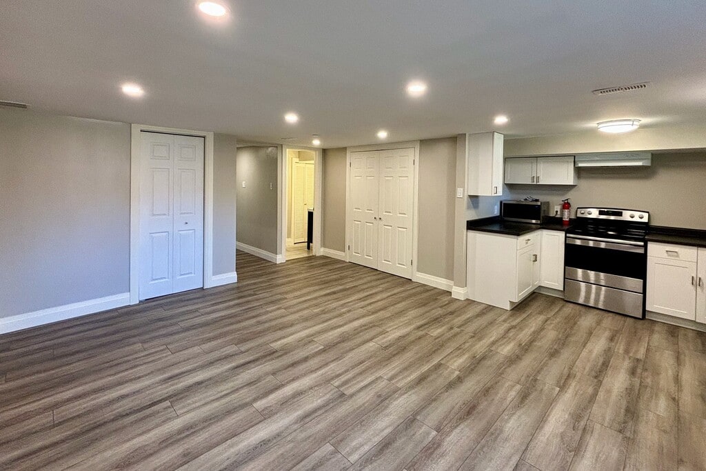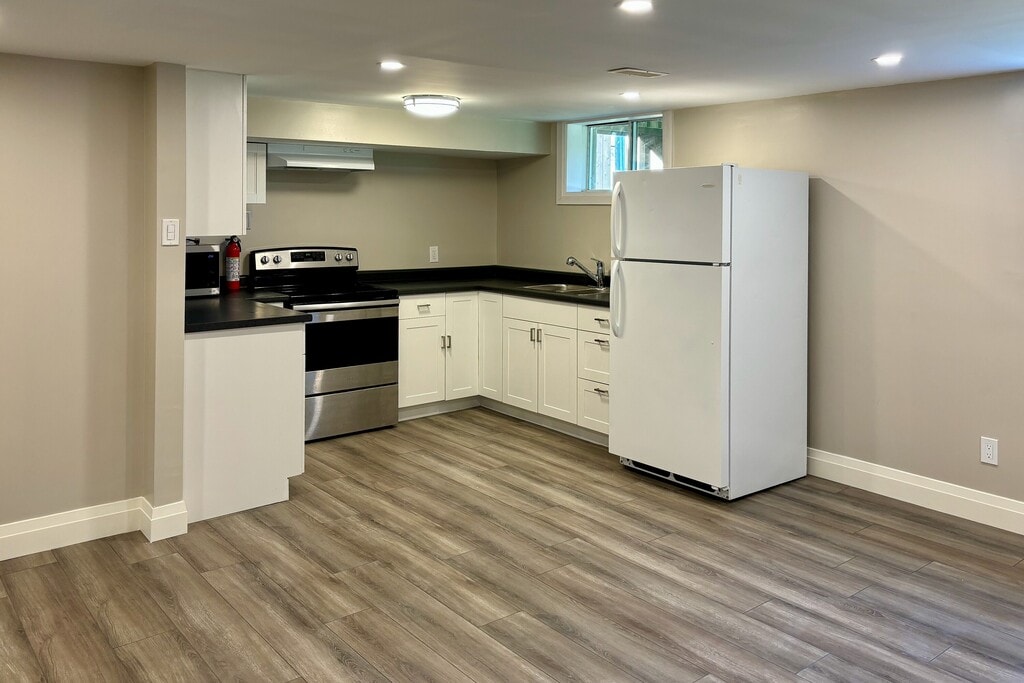 Annual two bedroom unfurnished rental in downtown Collingwood in lower level of a detached home with two dedicated parking spaces. Rent is all inclusive of heat, A/C, water and sewers, tenant to pay own Hydro and cable. Spacious and bright legal unit, with own side entrance, all new flooring, new kitchen cabinetry, enlarged egress window, soundproofed ceiling and updated bathroom. Apartment has lots of storage and in suite laundry. Landlord looks forward to receiving applications from AAA+ tenants.