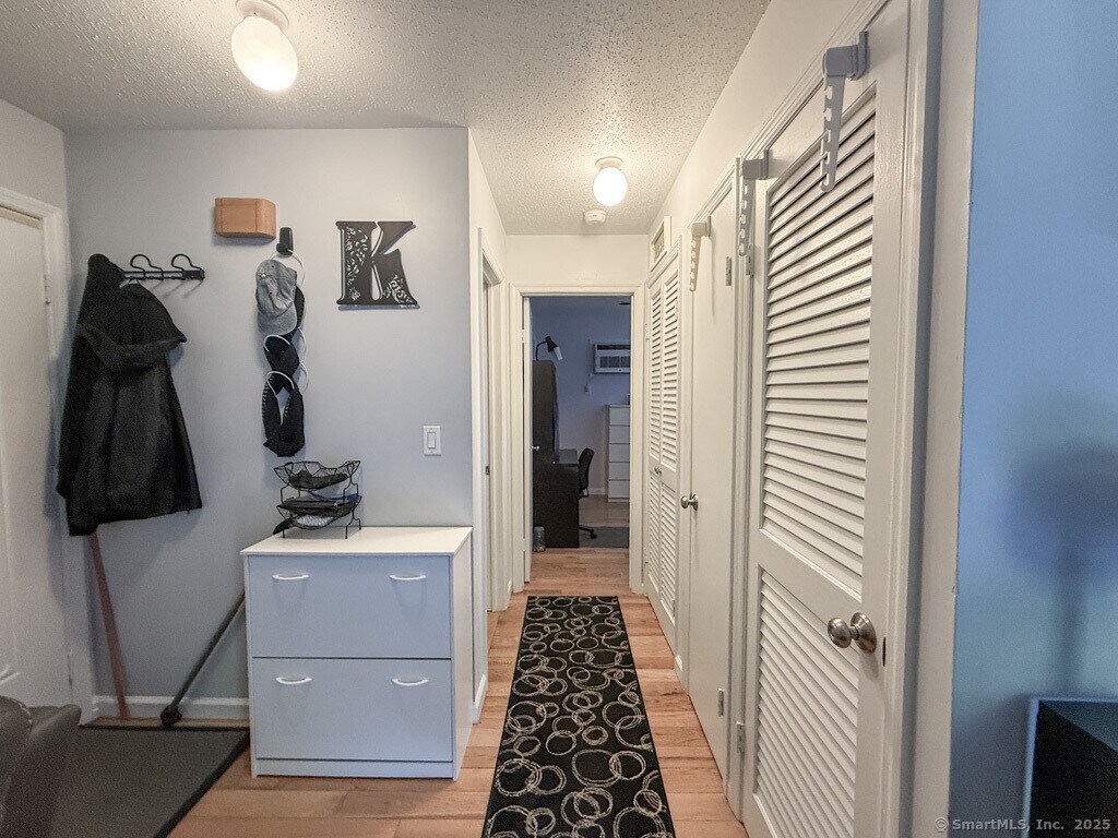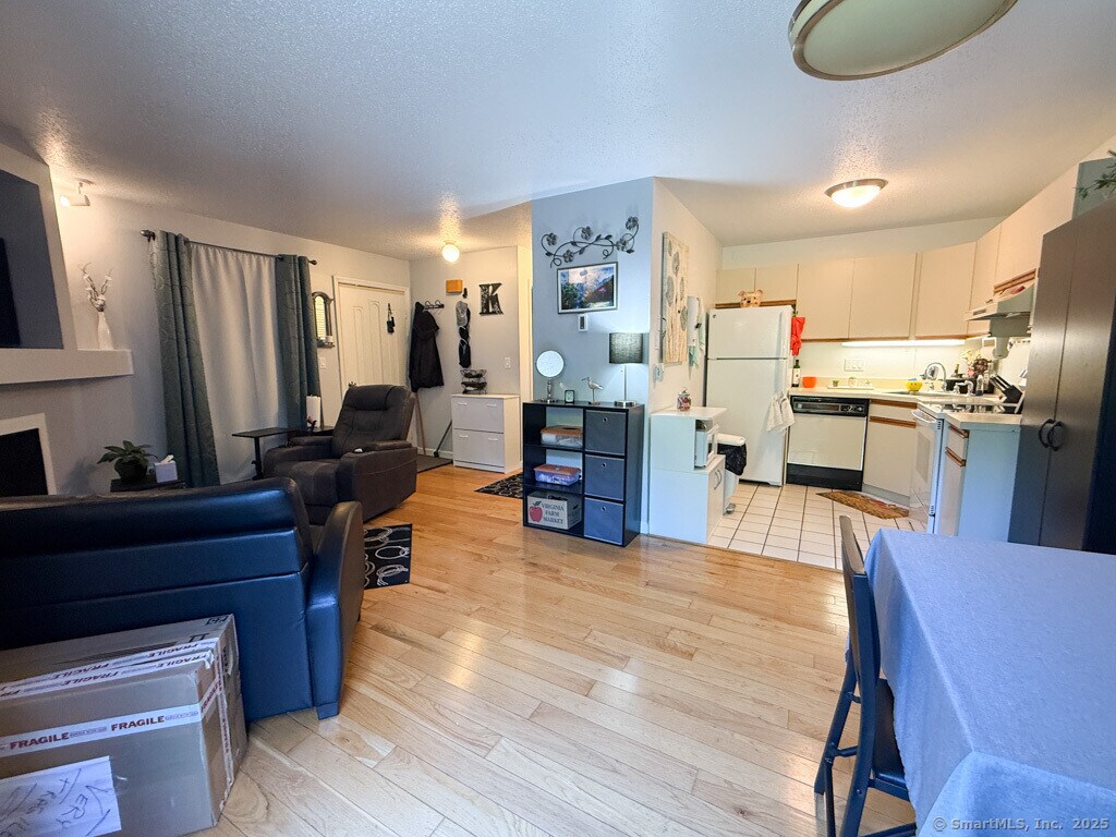 Call for Availability - Discover the charm of this delightful one-bedroom, one-bath ranch-style end-unit at the Riverbank Crossing" Community. Featuring a private garage and just a few steps from the shared entry door for this unit and one neighbor above. The inviting living room is highlighted by a wood-burning fireplace and custom built-ins, creating a cozy atmosphere. The kitchen features tile flooring, a brand-new stove and dishwasher, and a newer refrigerator, making meal prep a breeze. Adjacent to the kitchen, you'll find a dining area with sliders opening to the front deck, perfect for outdoor dining or relaxation. The spacious bedroom at the rear of the unit features a walk-in closet and a private deck offering serene views of nature. Enjoy the elegance of hardwood flooring throughout the living, dining, and bedroom areas. The below-unit garage features a generous 9 x 9 storage area and the hot water heater. The unit features electric heat and two new air conditioning wall units installed in 2024, with ample visitor parking and a location just minutes from shopping, dining, and I-84. No pets, no smoking. Excellent credit a must." MLS# 24137288