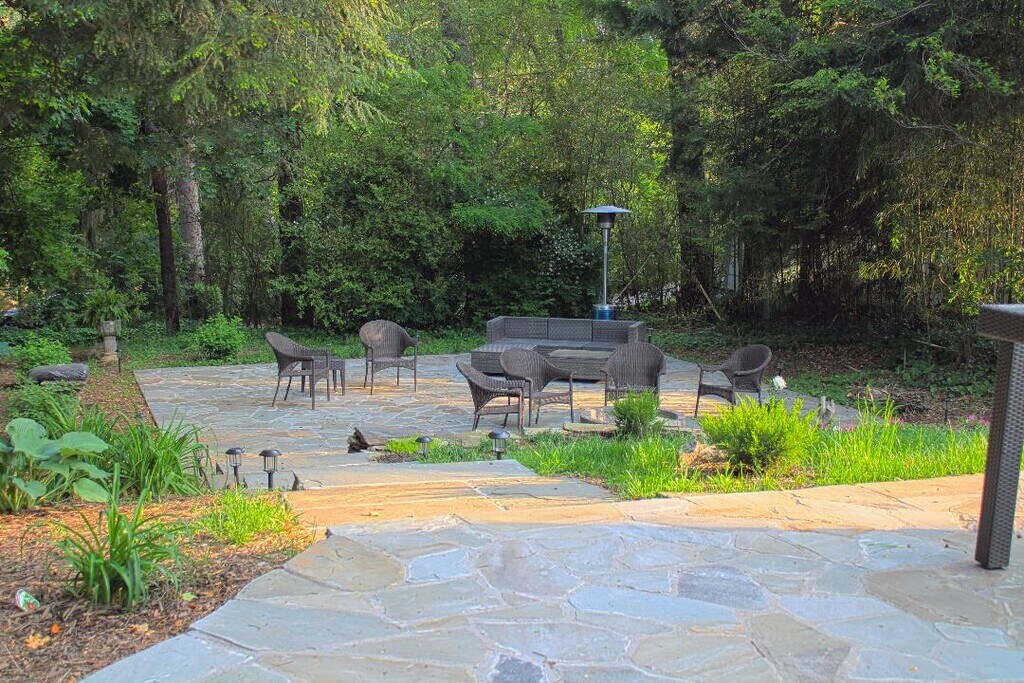 Enjoy Asheville's year-round beauty in this stunning, thoroughly remodeled 1917 Colonial Revival for the discerning guest. Located in the Proximity Park historic district of Grove Park, this gorgeous home features hardwood floors throughout, large windows, a sleek, modern kitchen with stainless appliances, stone counters, custom cabinets, and oversized island. All the convenience of staying in town, with all the mountain's natural beauty. Primary with en-suite on main floor. Second primary with sitting room and mountain view on second floor. People come to Asheville year-round to enjoy our weather. It's all four seasons, but gently. That's why we're always upgrading our 1200 sq ft of outdoor living space. After a day hiking the nearby trails or exploring downtown, enjoy the evening by the fire pit. Grove Park is hands-down the nicest neighborhood in Asheville, with treelined sidewalks, stacked stone walls, and manicured gardens framing its varied architectural styles. Edgemont Rd lies in the heart of this historic district. Within walking distance to Omni Grove Park Resort, City Bakery, Luella's BBQ, Taco Temple, and three city parks Fully furnished, all fees and utilities included. Owner lives on property, ensuring everything runs smoothly during your stay.