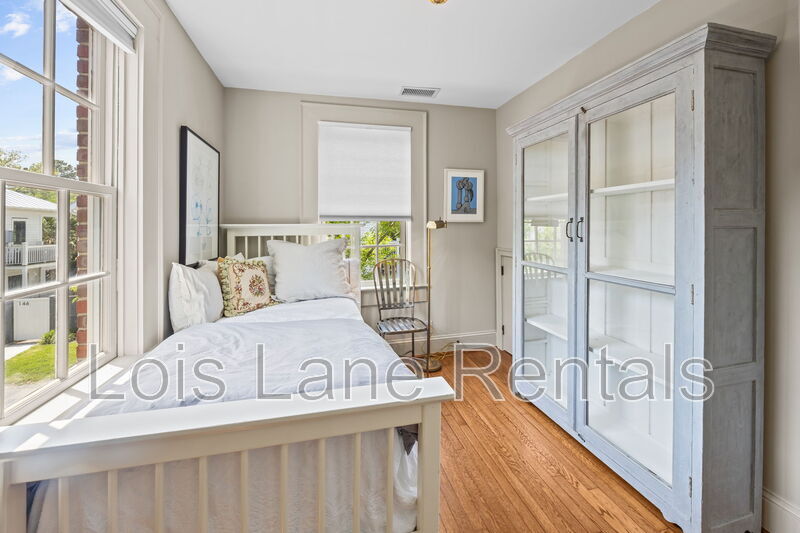 Located in the heart of Harleston Village, this charming and bright two-bedroom, 1.5-bath townhouse offers an ideal downtown lifestyle just moments from MUSC, Roper Hospital, Colonial Lake, and King Street. This turn-key home features hardwood floors throughout and a light-filled interior with a comfortable open floor plan. The primary bedroom is furnished with a queen bed, while the guest room offers a twin daybed, making the space well-suited for a variety of living arrangements. The property may be rented furnished or unfurnished. The kitchen is equipped with an electric range, microwave, refrigerator, disposal, and a brand-new dishwasher. A new washer and dryer are conveniently located on the second floor. Fresh interior paint and generous storage and closet space add to the home's appeal. Enjoy outdoor living on the covered rear porch with ceiling fan overlooking a private, fenced courtyard garden. Two reserved off-street parking spaces in the adjacent driveway (tandem) are included. Some pets may be negotiable. Available now. Minimum lease term is 6 months, with a preference for a 1-year lease. Application fee is $75 per occupant 18 years or older.