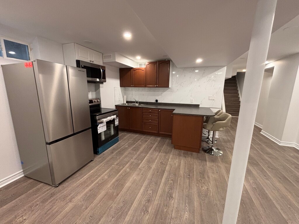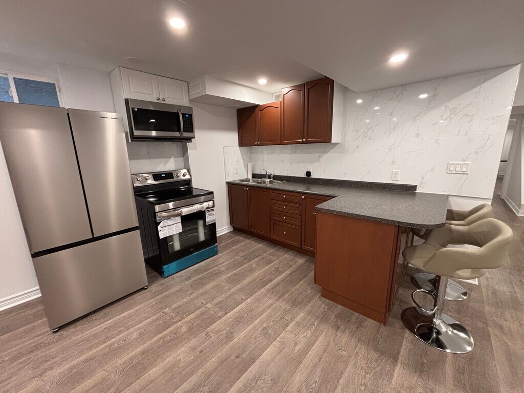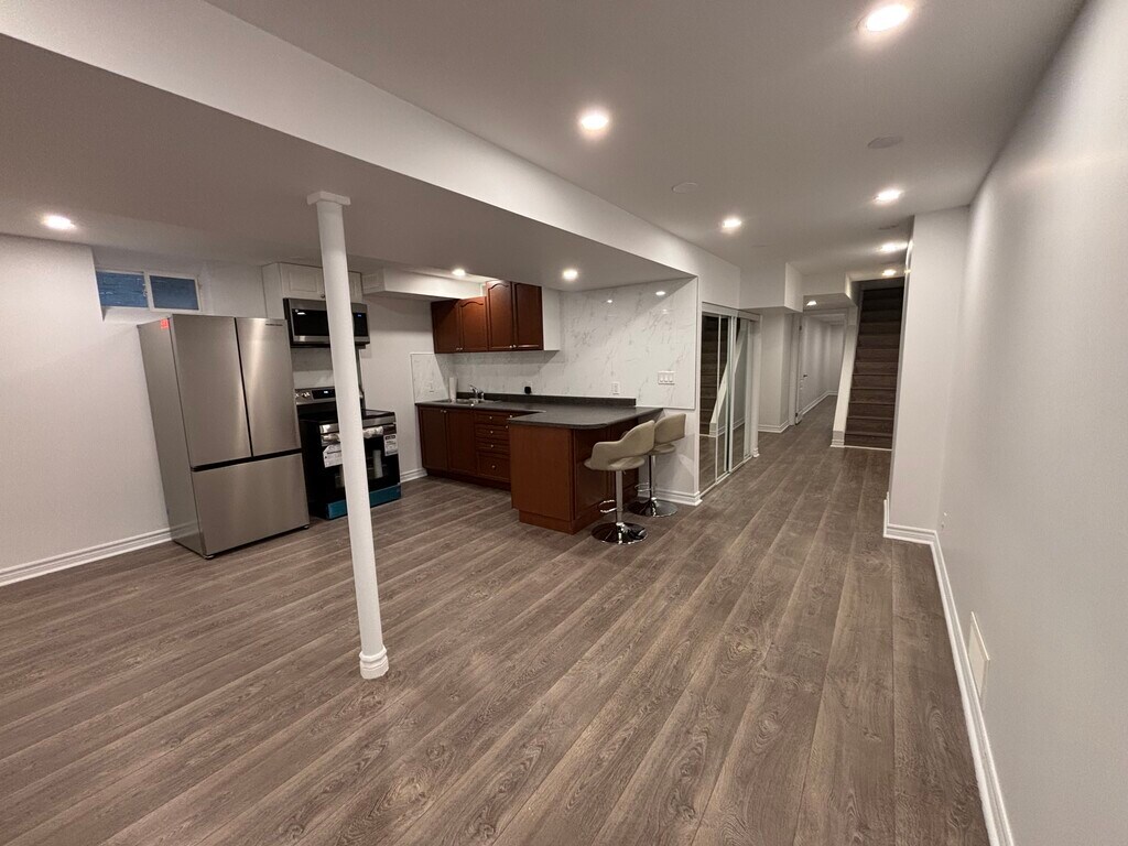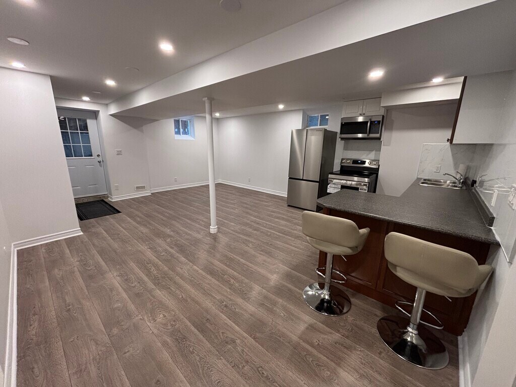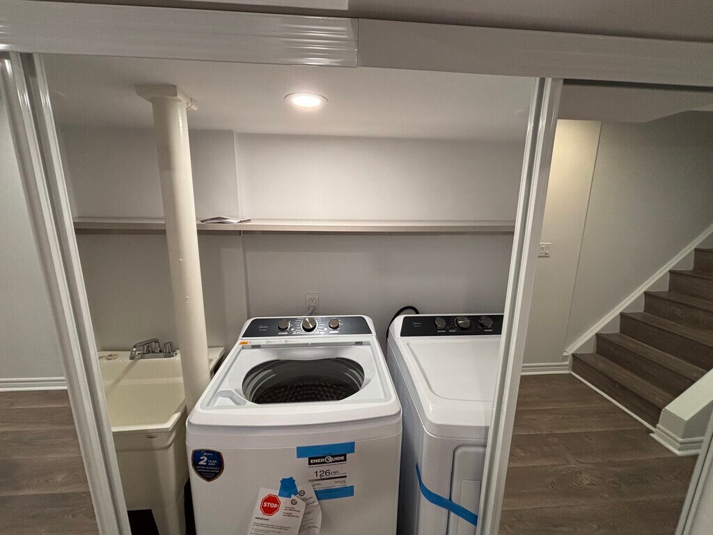 Brand new basement apartment with separate entrance through the backyard and private in-unit laundry. This modern, bright unit features large windows that bring in plenty of natural light, spacious closets, and lots of storage throughout. The open layout creates a comfortable living space with brand new finishes, perfect for relaxing or entertaining. High-speed internet and one parking spot on the driveway are included. Rent is $1,800 per month plus one-third of utilities. Ideal for a single professional or couple looking for a quiet and comfortable home. No smoking and no pets