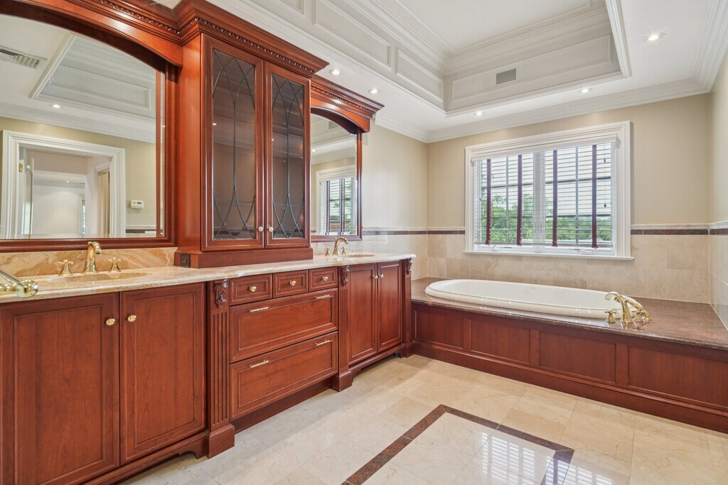 Beautiful 5BR, 4.5BA home set on a private cul-de-sac. As soon as you enter the home you can tell the craftsmanship and thought of detail that went into this home. The Brazilian cherrywood flooring, custom cabinetry and molding throughout. The sun drenched open flow offers the perfect entertaining space. Located just off the entry foyer is your formal living and dining space, home office, and a great room with a fireplace. Gourmet kitchen offers a suite of appliances - Sub-Zero refrigerator and wine fridge, Wolf ovens & 6-burner cooktop. Upstairs living quarters no details were spared. The grand primary suite offers coffered ceilings and a spa-like bathroom quipped with a jetted tub, plus 3 more spacious bedrooms. Thoughtful details such as heated flooring, electronics, rec room, gym, stone patio, private outdoor yard, proximity to Flat Rock Nature preserve, NYC, local shopping and restaurants make this home highly desirable!