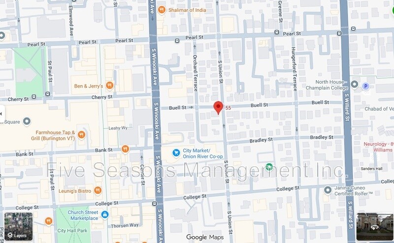 Available June 5th 2026. Apartment is located in an awesome location right near UVM, Champlain College, Church Street, City Market, and Pearl Street Beverage. It has two great sized bedrooms and nice counter space. This apartment is professionally managed by Five Seasons Property Management! Follow us on IG: @fiveseasonsvermont Lease term: Initial lease term will be offered from 6/5/2026 - 5/30/2027 with an option to renew. Laundry: No laundry on site but Union Street Laundry is right down the block. Parking: On-street parking only. Pets are not permitted. Utilities: - Tenants are responsible for electricity, gas (heat/hot water), internet service, annual rental registration ($110), and compost (optional). - Landlord pays for water, trash, and snow removal. Monthly Average Utility Cost Gas: $175 Electricity: Water: N/A *Figures are not exact, these are based on past tenant's usage over a 12 month average. Rental criteria: - Rental history (or a cosigner) - A credit and background check is typically required - Smoking is not permitted - Apply today! To apply and schedule a viewing please visit: - Leases are sent and signed electronically - security deposit due upon signing. Application Process: - A rental application can be submitted prior to viewing the apartment. - Our application is located right on our website- just simply click “submit an application” next to the unit you are interested in! - Everyone in your group will need to apply. - You only need to apply once and it is good for any of our units!