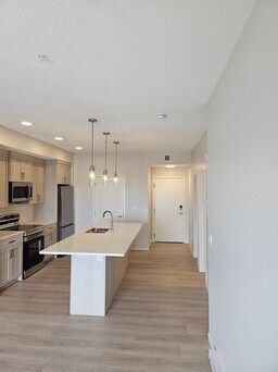 1 MONTH FREE | 1 Bedroom + Den 2 Bathroom Condo – Top Floor Unit in Southwest Calgary Address: 550 Belmont Street SW – Unit 2408, Calgary AB Rent: $1,599 Security Deposit: $1,599 Availability: Immediately Utilities: Heat & Water Included Parking: Underground parking available Incentive: 1 MONTH FREE Property Description This well-designed 1 bedroom plus Den, 2 bathroom top-floor condo offers comfort, privacy, and modern convenience in the desirable community of Belmont in Southwest Calgary. With over 850 sq. ft. of functional living space, this home is ideal for professionals, couples, or roommates looking for a quiet and well-located property. The open-concept layout features a modern kitchen with quality finishes, spacious living and dining areas, and large windows that provide excellent natural light. Both bedrooms are generously sized, and the primary suite includes a private ensuite bathroom for added convenience. A full second bathroom, in-suite laundry, and secure building access complete the home. Property Highlights 1 spacious bedroom plus Den 2 full bathrooms Open-concept kitchen and living area Top-floor unit 850 sq. ft. of thoughtfully planned space In-suite laundry Secure, well-maintained building Underground parking available About the Community – Belmont, SW Calgary Belmont is one of Southwest Calgary's most desirable emerging communities. Known for its quiet residential environment and easy access to both amenities and major roadways, this location is well suited for families, professionals, and commuters. Nearby amenities include grocery stores, restaurants, retail shops, fitness centres, medical services, and everyday conveniences. The community features walking paths, parks, green spaces, and proximity to the Township Shopping Centre. Residents enjoy quick access to Stoney Trail, Macleod Trail, and neighbouring communities such as Silverado, Shawnessy, and Yorkville. Ideal For: Professionals Couples Small families Roommates seeking equal living spaces and private bathrooms Contact Information For inquiries or to schedule a viewing, please contact: Shubh Manju Phone: Email: or Call to book a viewing directly