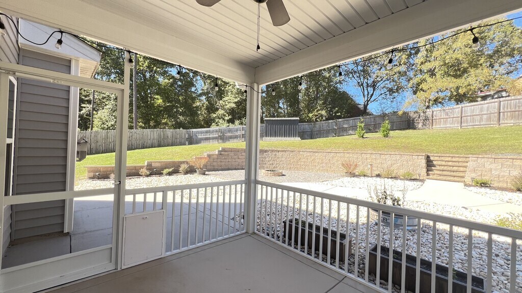 Stunning Home for Rent at the End of a Quiet Cul-de-Sac – Your Private Oasis Awaits! Welcome to a beautifully maintained gem, perfectly tucked away for peace and privacy in a desirable cul-de-sac location. This spacious, light-filled home offers a perfect blend of comfort, style, and functionality. Step inside to discover a formal dining room featuring elegant coffered ceilings and classic chair rail detailing—ideal for hosting dinners or transforming into a stylish home office or lounge space. The heart of the home is a bright, open-concept living area bathed in natural light, seamlessly flowing into a chef's dream kitchen. You'll love the 42-inch cabinets, stunning granite countertops, oversized island, and ample room for cooking and entertaining. A convenient half-bath is located on the main level for guests. Upstairs, enjoy a large loft/flex space—perfect for a media room, playroom, or home gym. The laundry room is also on the second level, right where you need it most. Three generously sized secondary bedrooms share a beautifully appointed full bathroom with double vanities, making mornings a breeze. The primary suite is a true retreat, thoughtfully set apart for privacy. It features abundant natural light, a luxurious en suite bathroom with dual vanities, a soaking tub, separate glass-enclosed shower, and a massive walk-in closet. Outside, unwind in your beautifully landscaped backyard. The screened-in porch offers a serene space to relax year-round, while the fully fenced yard includes a charming concrete walkway, separate patio pad, and pergola—perfect for outdoor dining or cozy evenings under the stars. Ample garage storage with built-in shelves completes the package. Be sure to enjoy the community pool in the warm North Carolina weather. This home truly has it all—space, style, and comfort in a peaceful, private setting. Don't miss this rare rental opportunity!