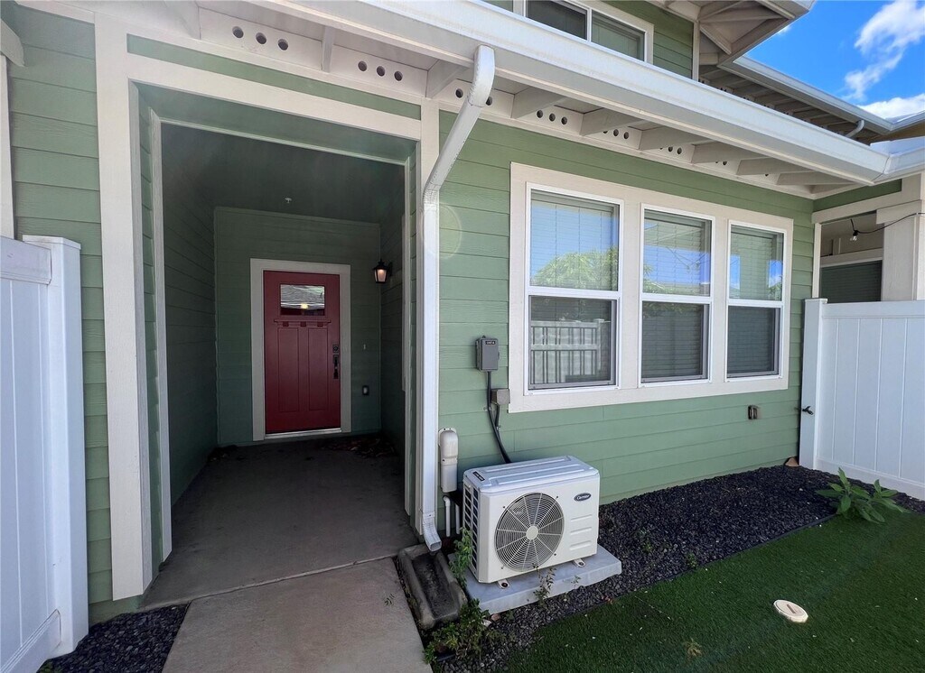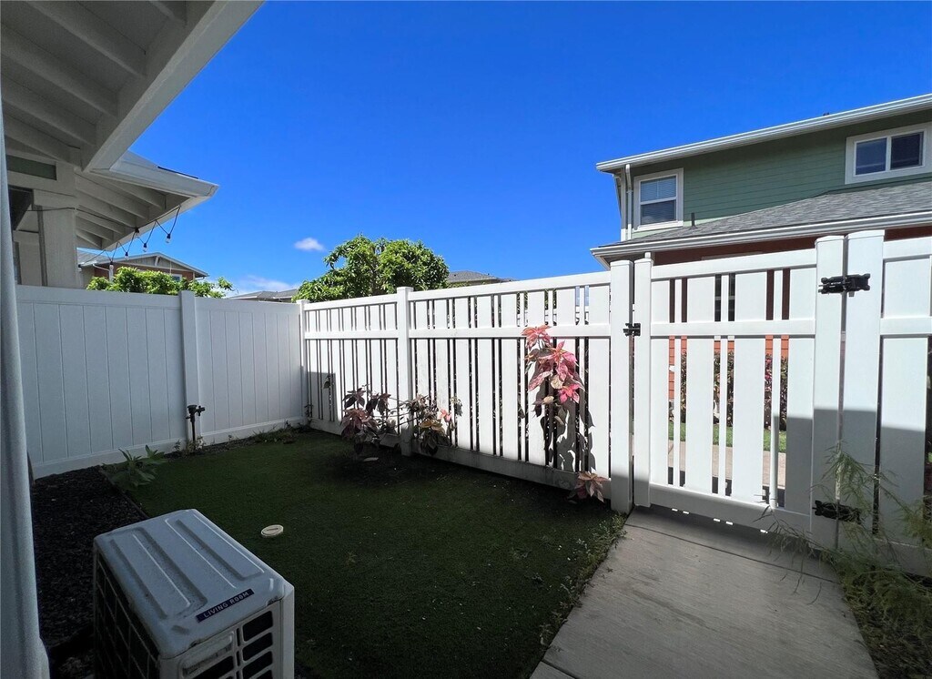 Welcome to Pohakala at Mehana, one of Kapolei's newest and most desirable communities. This recently upgraded townhome offers modern comfort with the added bonus of your own private yard. Parking is a breeze with space for two vehicles, including a driveway and a flexible garage. Inside, upgraded vinyl plank flooring adds a sleek, contemporary touch throughout. Stay cool year-round with three split A/C units and ceiling fans in every bedroom. The thoughtfully designed layout features a spacious kitchen that opens seamlessly into the living area—perfect for everyday living and entertaining. Each bedroom includes its own private bathroom, offering comfort and convenience for all. Residents enjoy access to Mehana's outstanding amenities, including parks, walking and biking paths, the Mehana Activity Center with an 80-foot pool, BBQ areas, meeting and party rooms, and multiple playgrounds. All of this, plus close proximity to Kapolei's dining, shopping, and entertainment options. No pets allowed.