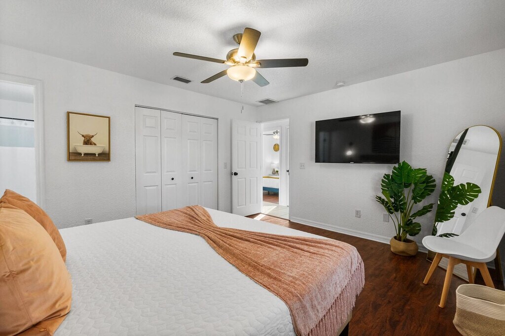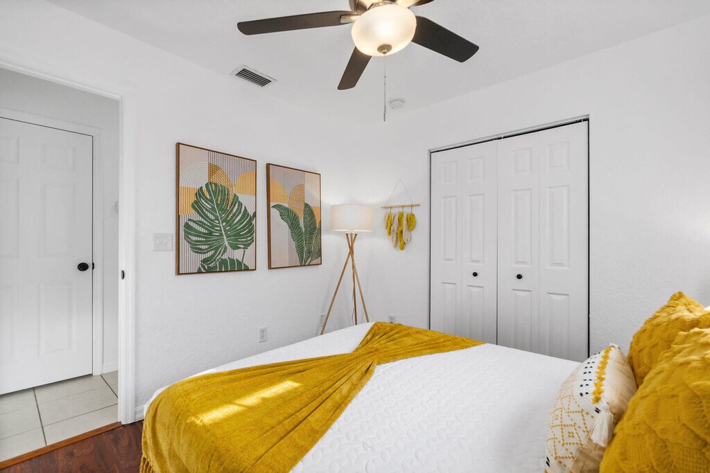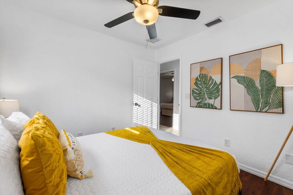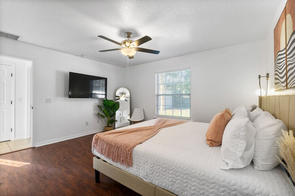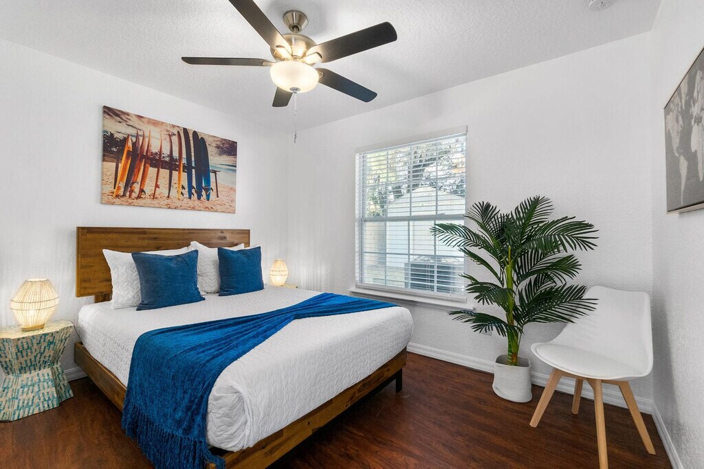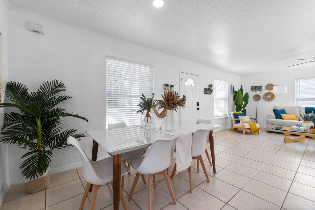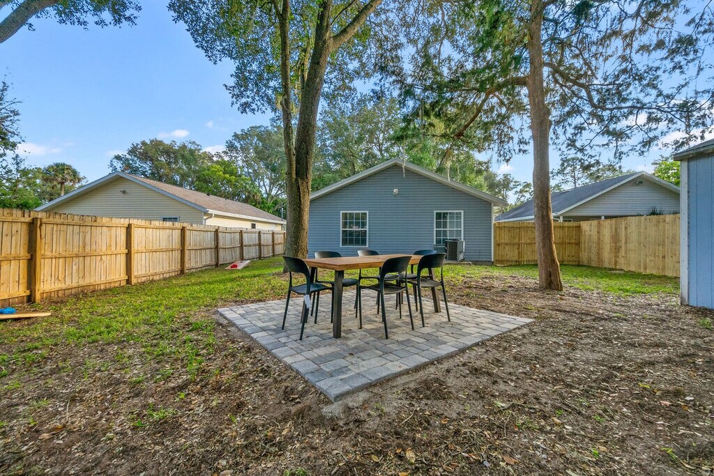 Feel at home in this beautiful 3-bedroom, 2-bathroom home with a fenced backyard and great outdoor space. The open kitchen is well stocked for all your cooking needs, including a toaster, pots and pans, and more. The living room features a smart TV and cozy seating. This home also includes cornhole and outdoor dining under a canopy of beautiful trees. One dog under 50 lbs is welcome with a nonrefundable pet fee of $100. Two off-street parking spaces are available. This cozy home is located in the West King district, full of history and charm. Popular local spots such as Back 40 Urban Cafe are within walking distance, and Bog Brewery is nearby. Downtown St. Augustine is a short 3-5 minute drive away, and Vilano Beach is just a 10-minute drive from the home. The best way to get around St. Augustine is with your own car or in a rental with free parking included with your stay. Guests can also use rideshare apps like Uber and Lyft or call a taxi. Once in the city center, many of St. Augustine's shops, restaurants, art galleries and attractions sit within the historic city center, making it easy to get around on foot. Quiet hours are between 9:00 PM and 8:00 AM. If you have more guests on the premises than you have notated in your reservation, an additional fee may be charged. The home has an actively recording security camera installed at the front door. An attempt to remove, tamper, or disconnect the internet to the Ring may result in the reservation being canceled and guests requested to vacate the premises. The Florida East Coast Railway runs near the home, and you may hear it several times a day, including at night. Noise machines are included in the sleeping areas if needed. No vaping or smoking is allowed whatsoever on the property, including the front porch. If evidence of smoking is found, you will be subject to an additional cleaning fee. [SI]